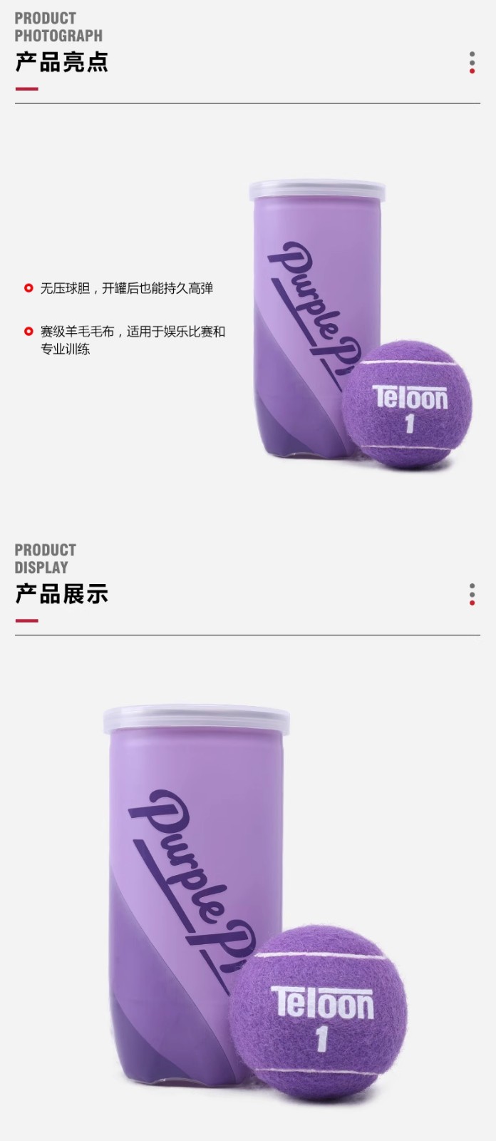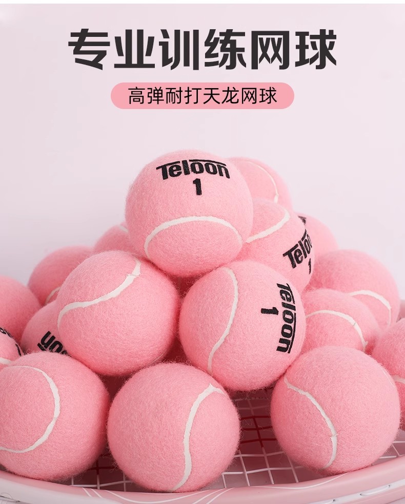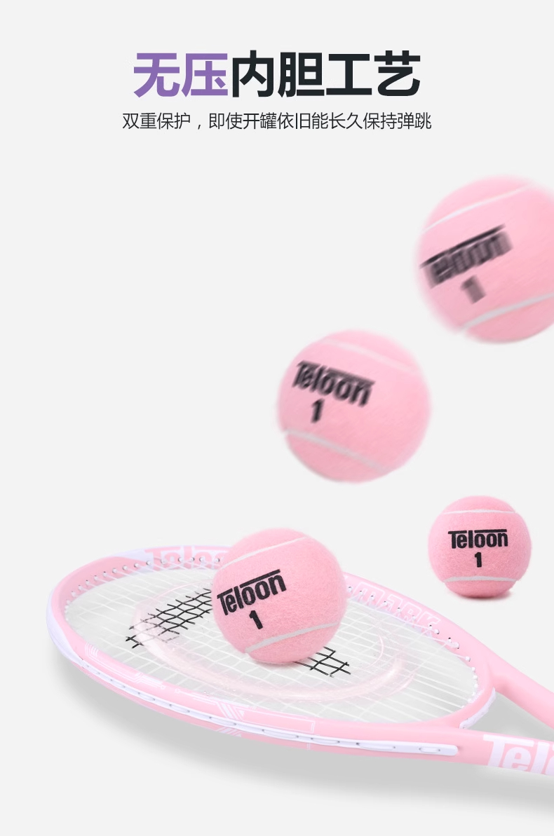Teloon天龙网球 粉色网球2粒装罐装高弹耐打有压比赛训练网球 比赛/训练用球,球速快,弹性好,粉色网球,适合全场地使用