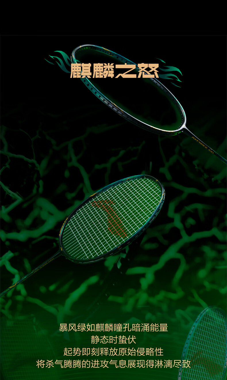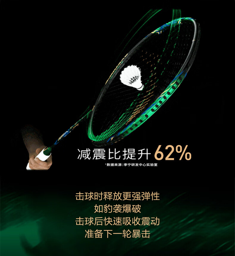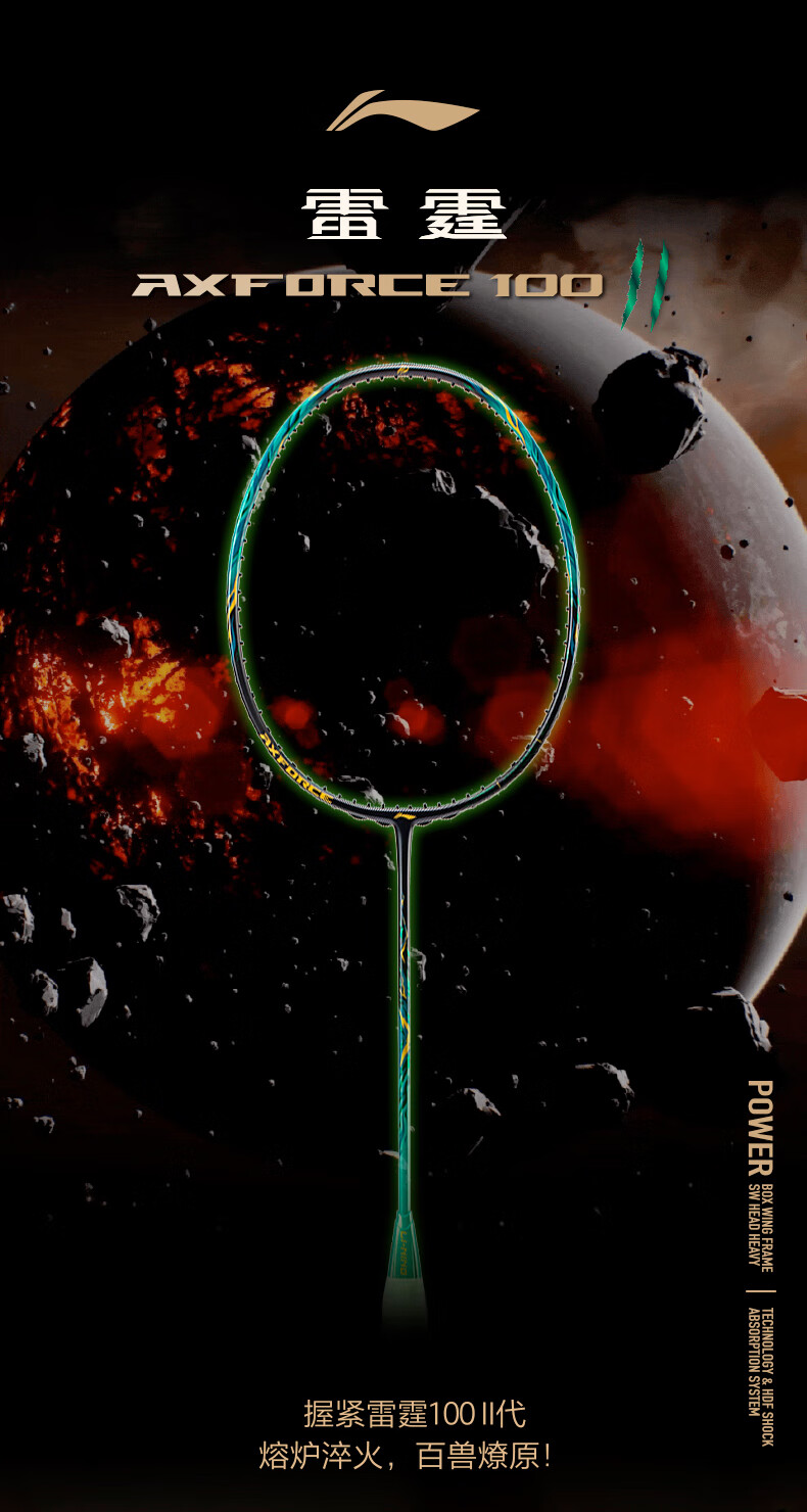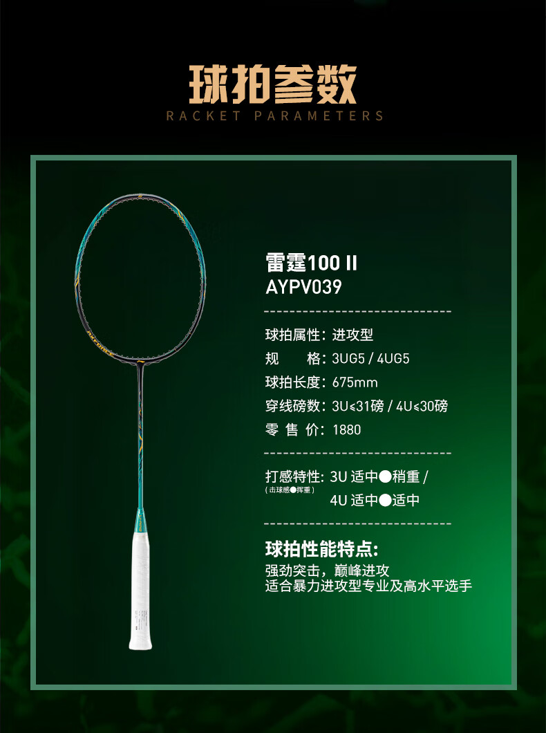 LI-NING 李宁 雷霆100二代 羽毛球拍 碳纤维专业比赛拍 减震高端进攻型单拍 雷霆100Ⅱ AYPV039-3 暴风绿 强劲突击,巅峰进攻 适合暴力进攻型专业及高水平选手