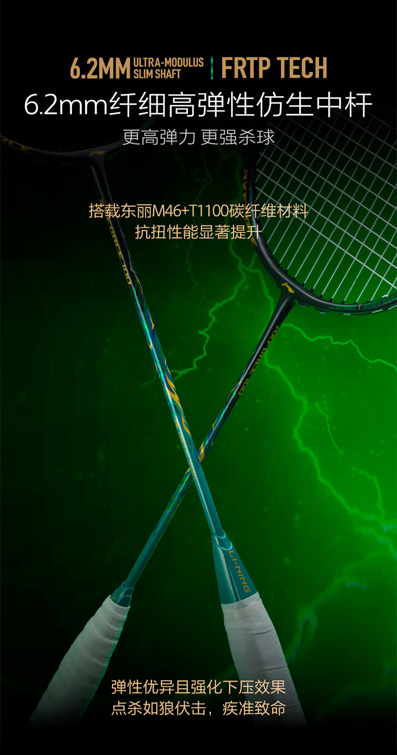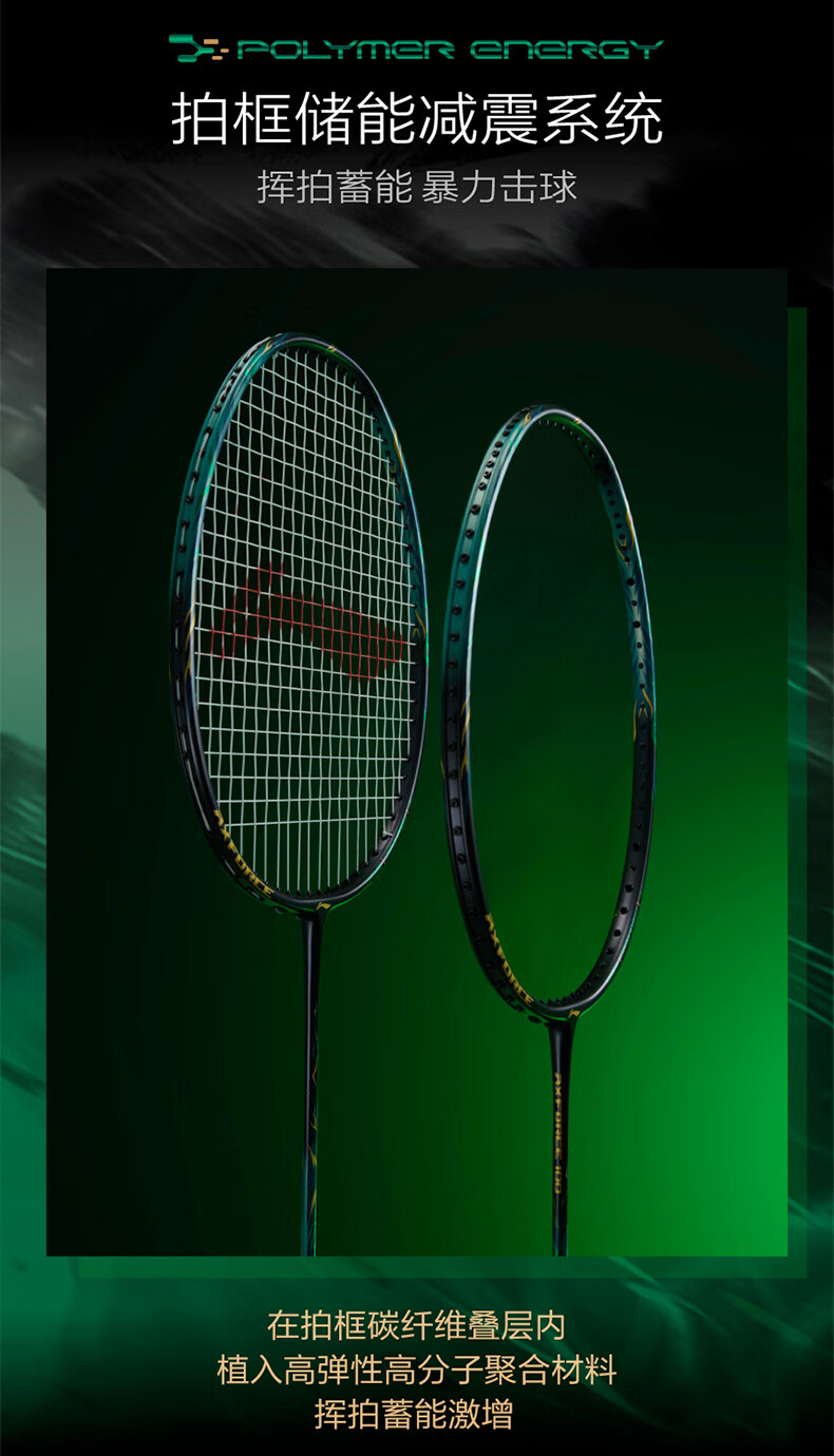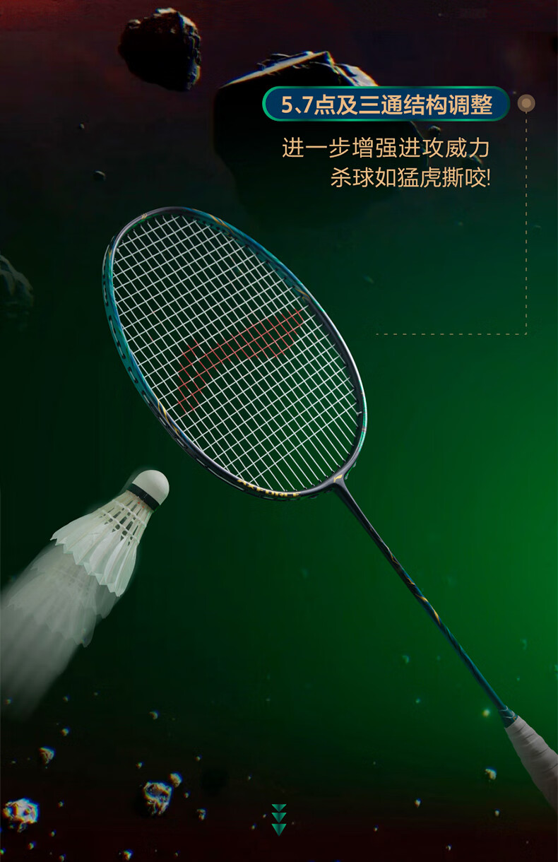 LI-NING 李宁 雷霆100二代 羽毛球拍 碳纤维专业比赛拍 减震高端进攻型单拍 雷霆100Ⅱ AYPV039-3 暴风绿 强劲突击,巅峰进攻 适合暴力进攻型专业及高水平选手
