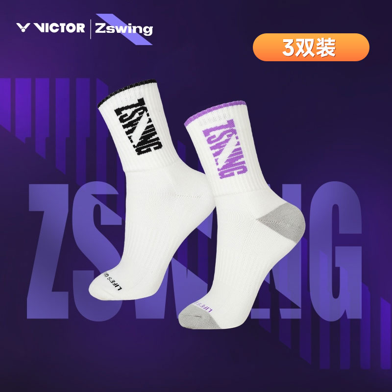 VICTOR威克多 胜利羽毛球运动袜 郑思维专属系列 毛巾底透气跑步健身运动袜 中性高筒袜 SK508ZSW L码 25-28cm 本品参加运动年货节满129减20 299减50 499减80 999减120元大促!