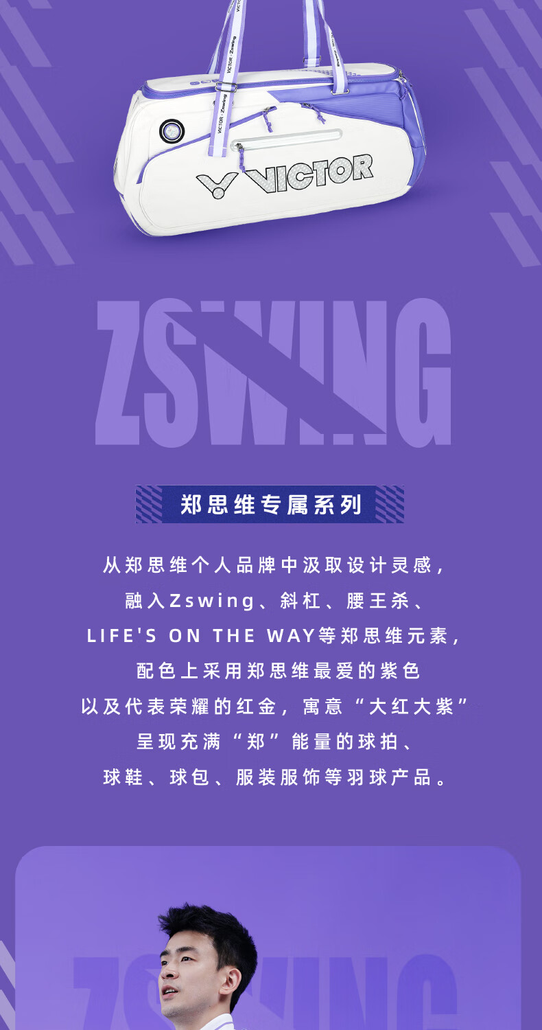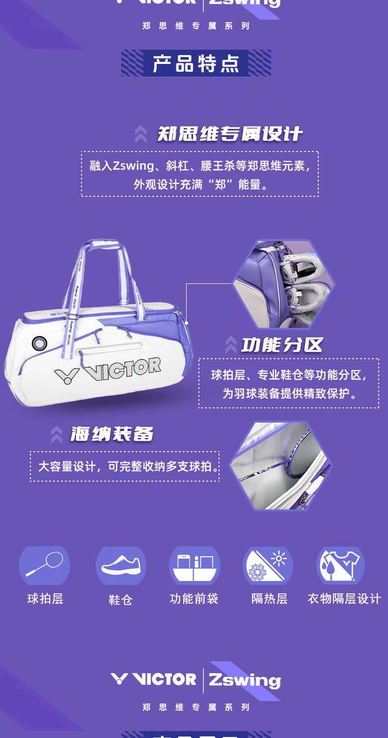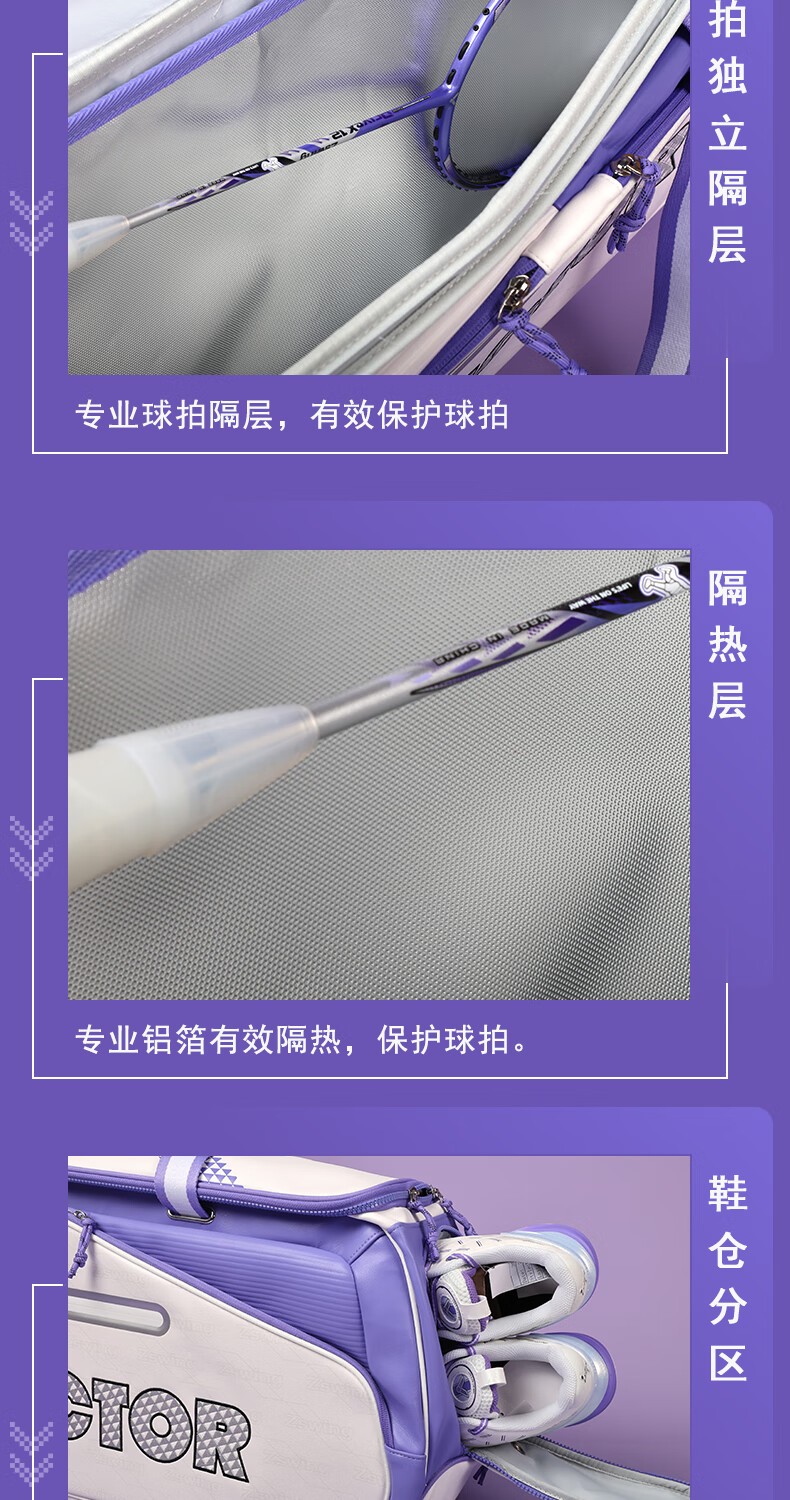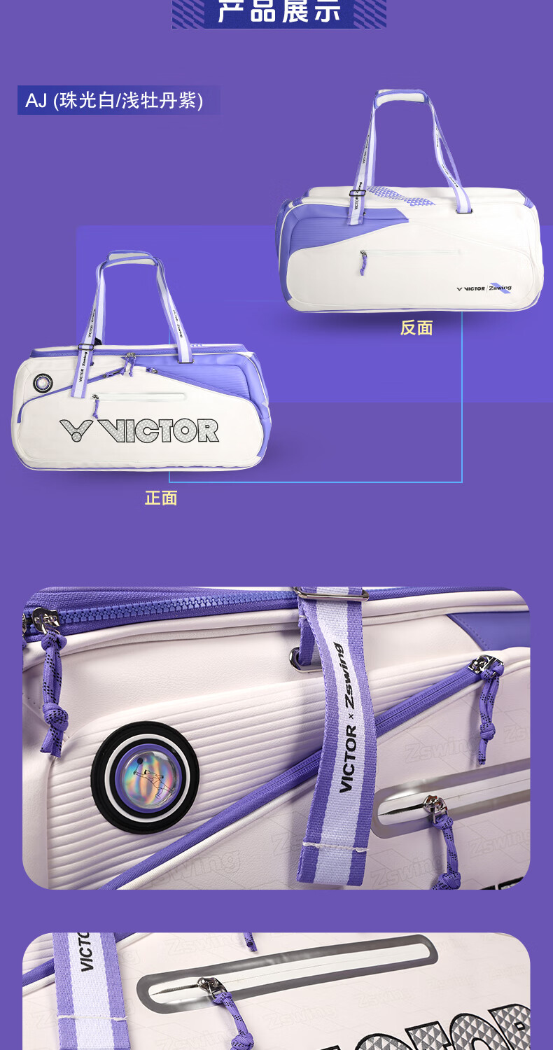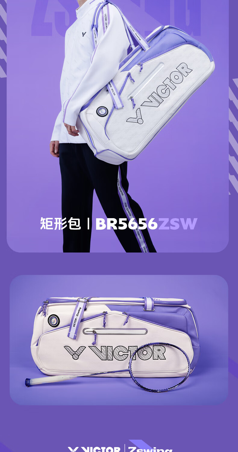 VICTOR 威克多胜利 羽毛球包 郑思维 ZSW专属 矩形包 BR5656ZSW/AJ 珠光白/浅牡丹紫 郑思维专属设计 大容量 功能分区