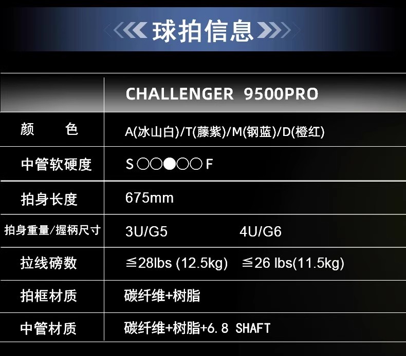 挑战者9500PRO延续了挑战者9500的经典打感物性,