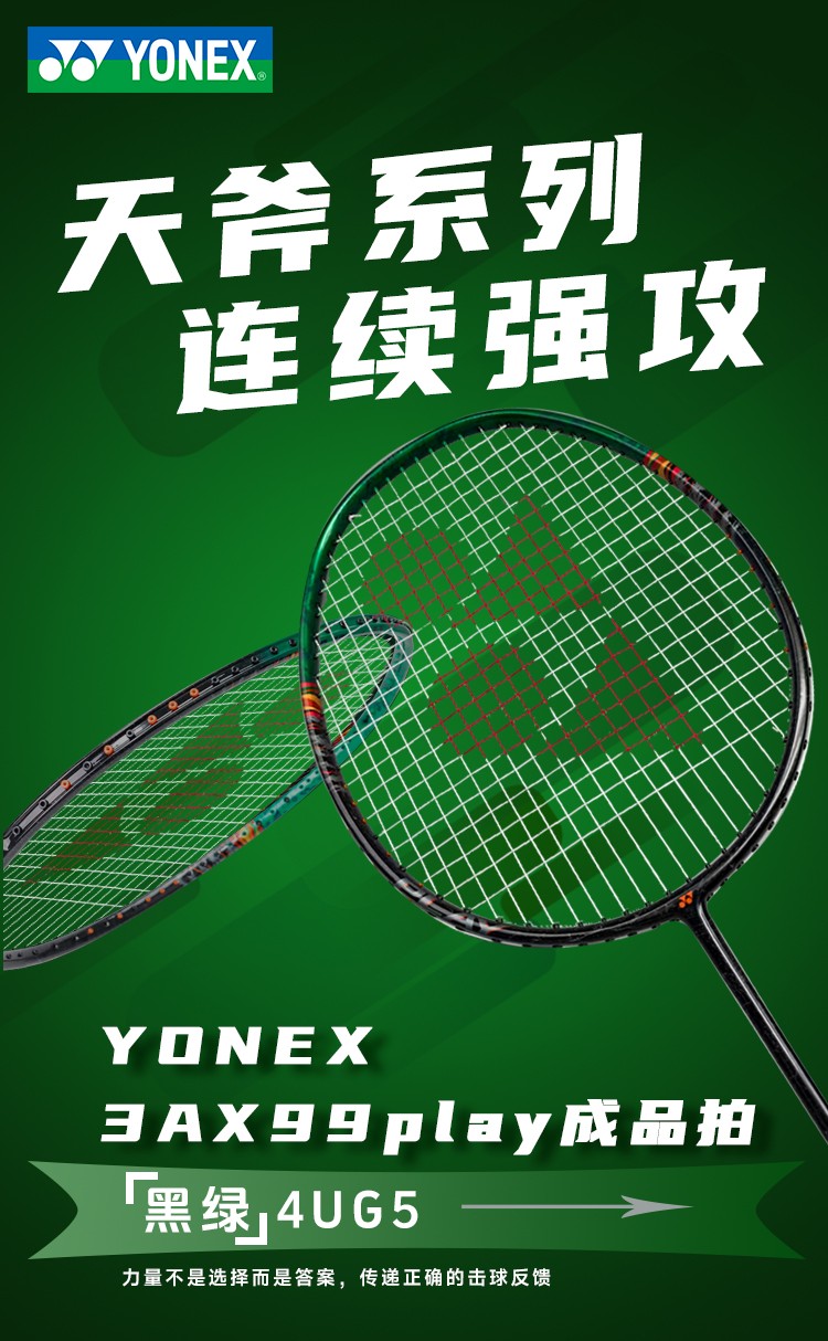 尤尼克斯YONEX羽毛球拍 全新第3代天斧99play 黑绿 成品拍