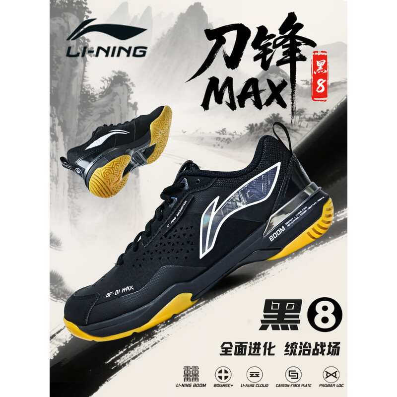 LI-NING 李宁 羽毛球鞋 男女款 刀锋MAX 黑8配色 舒适透气 减震防滑 AYAU003-3 黑色 使用EG2.5标准宽度,更适合亚洲人脚型