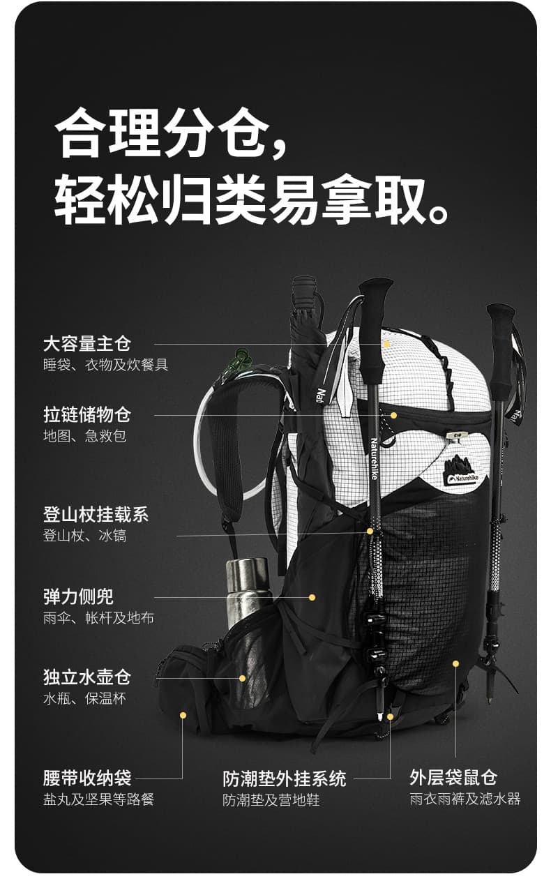 挪客 氦登山背包 专业户外大容量徒步背包男女通勤旅行双肩包氦系列 CNK2450XB016 40L