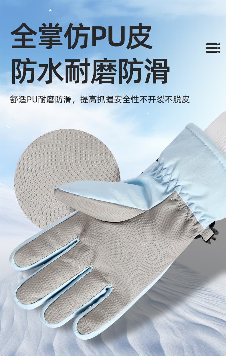 内里加厚暖绒亲肤柔软,快速蓄热锁温,-10℃也能暖护双手。