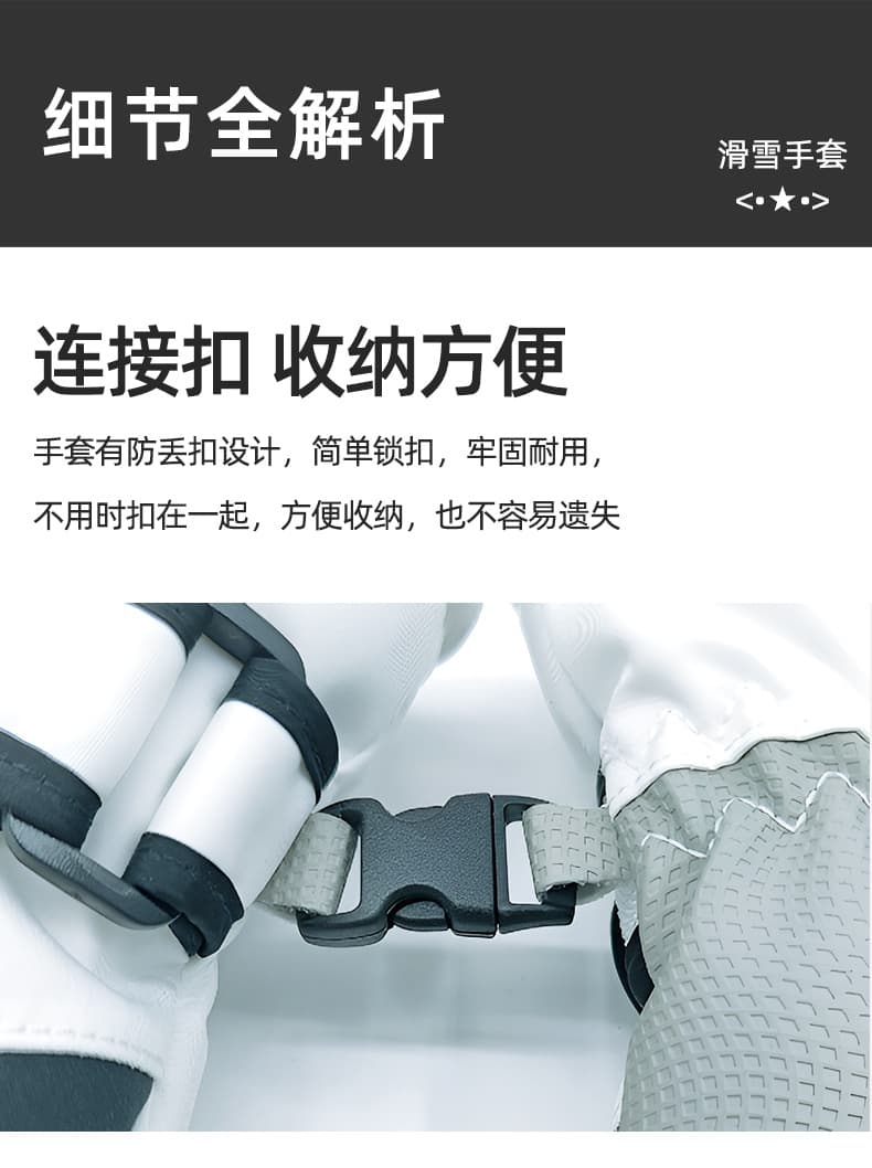 腕部加长弹力收口 + 魔术贴调节,贴合手腕防灌风,锁温性强。