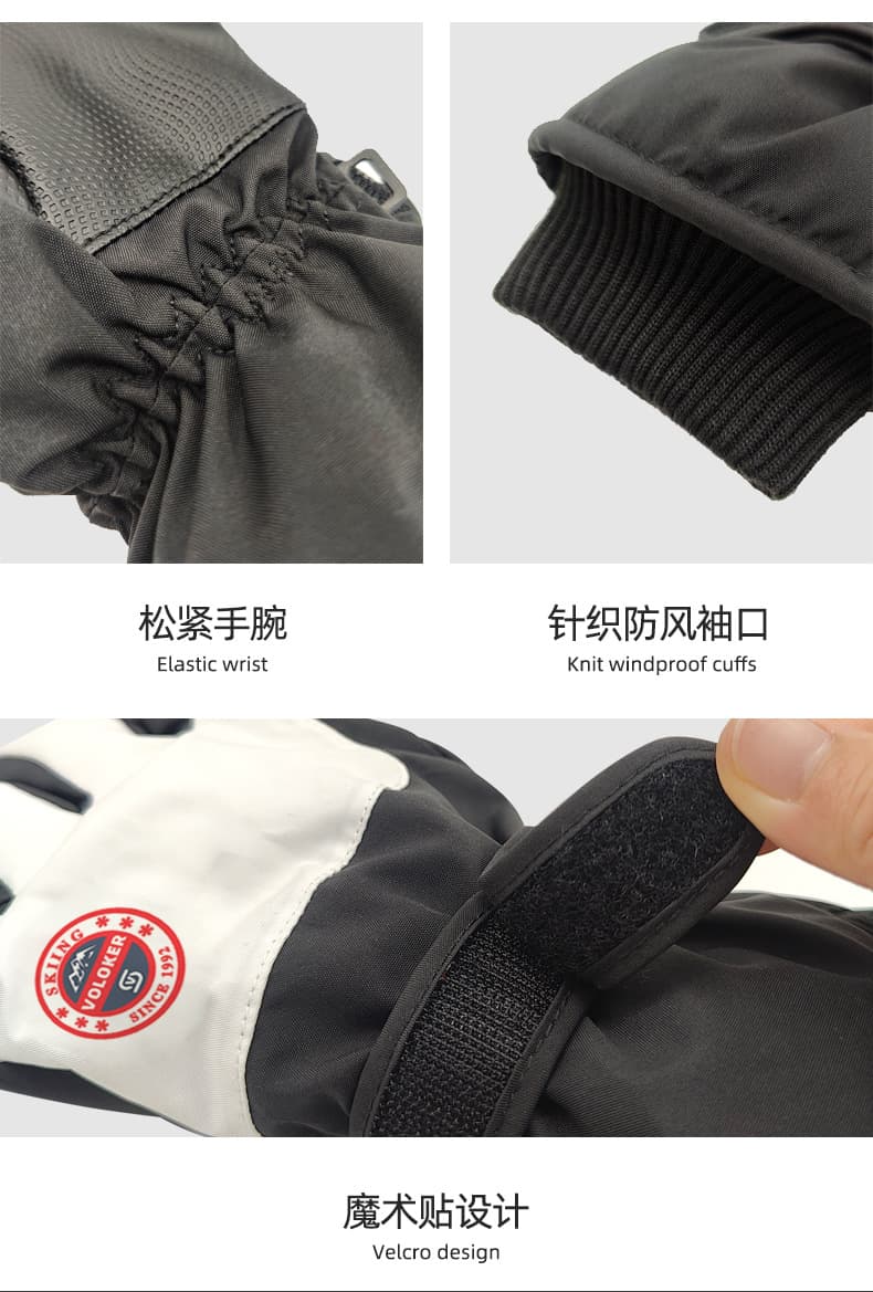 腕部加长设计 + 魔术贴调节,贴合手腕防灌风,还能挡雪水。