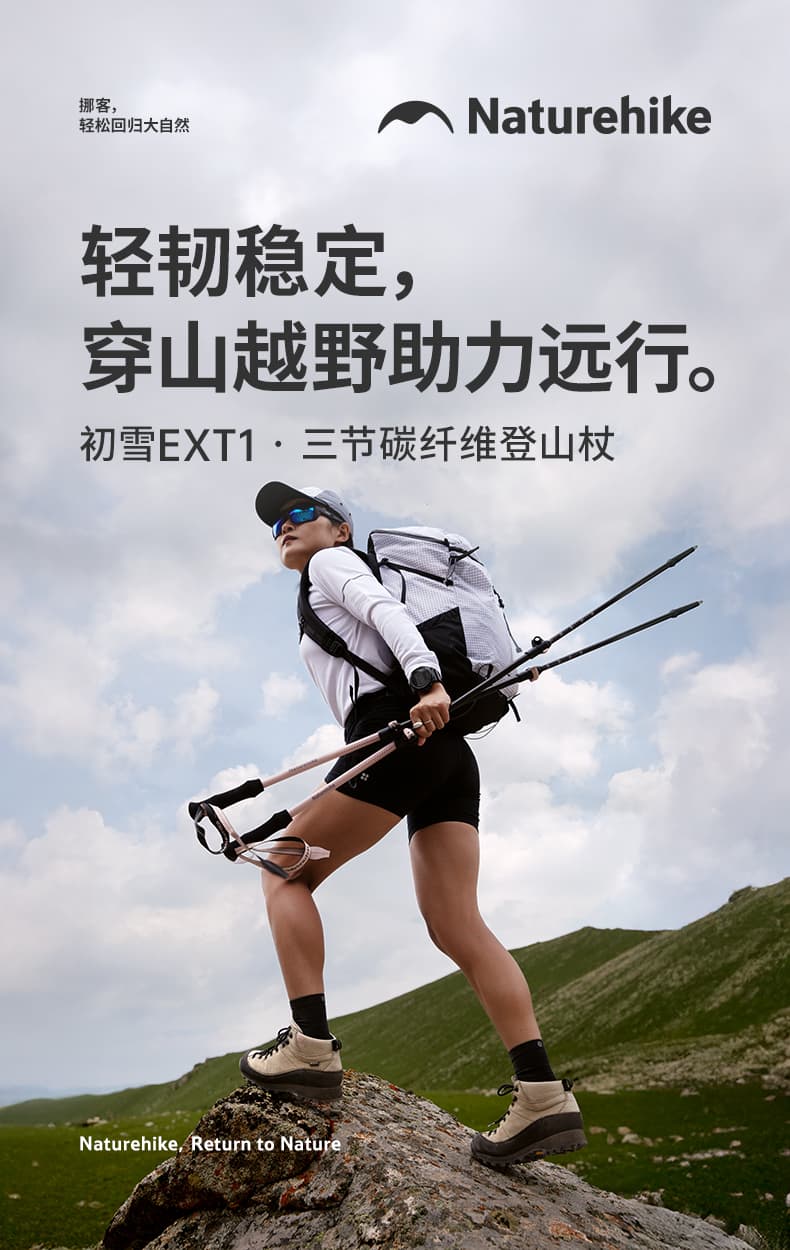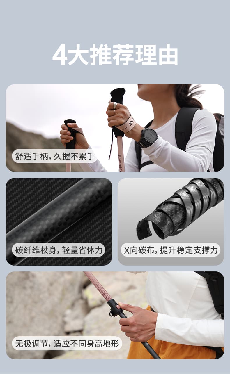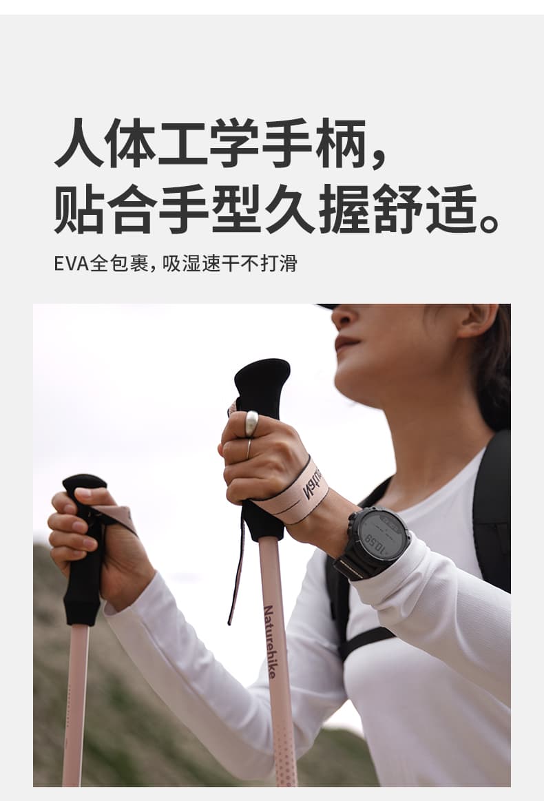 比传统铝合金杖轻 40%,长途徒步大幅减轻手臂疲劳。
