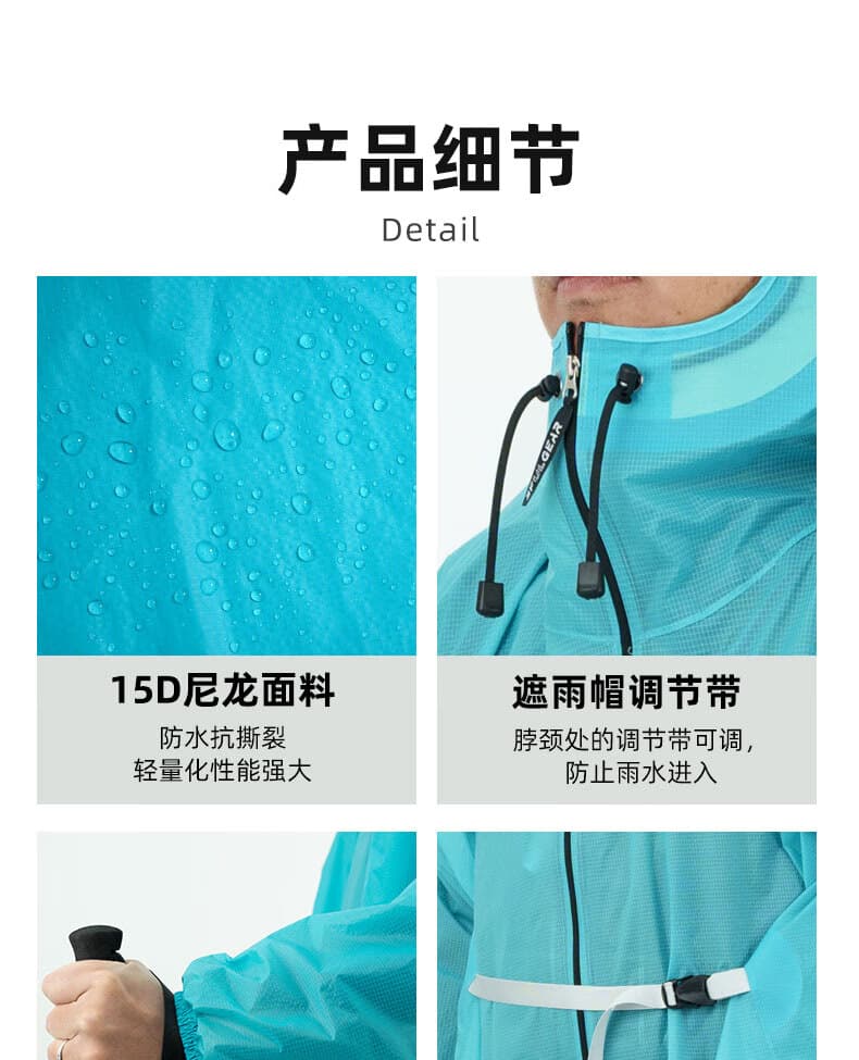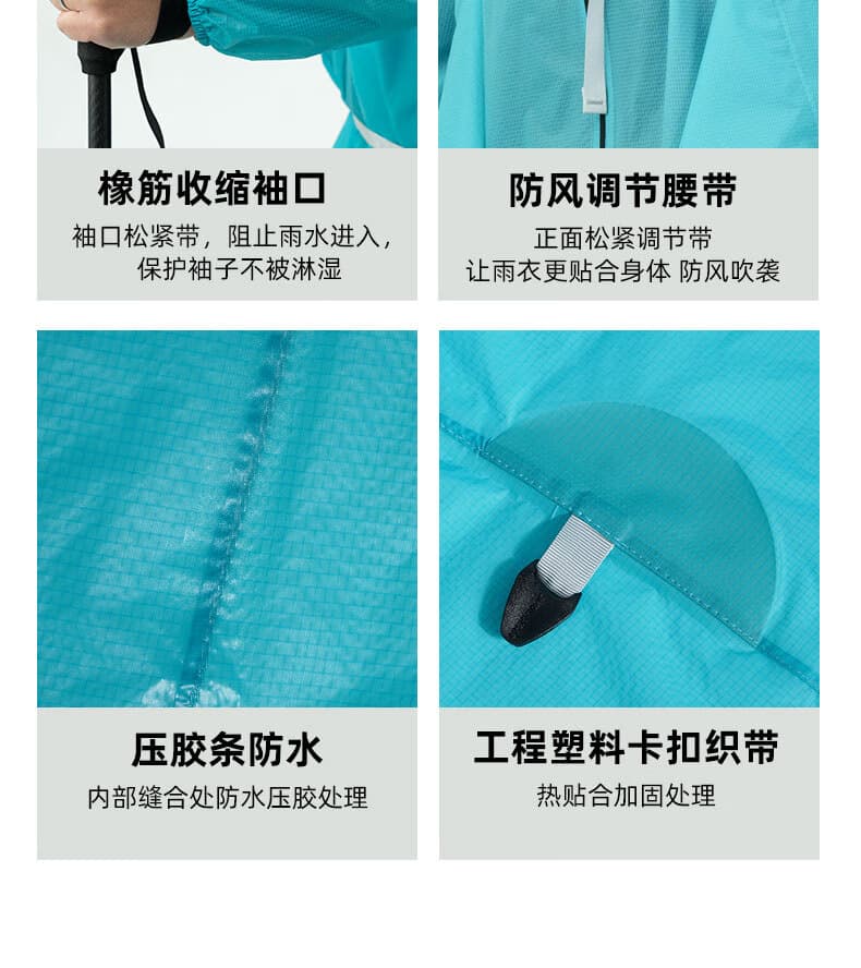 魔术贴松紧袖口 + 腰部抽绳,防风不灌雨。