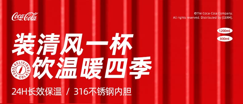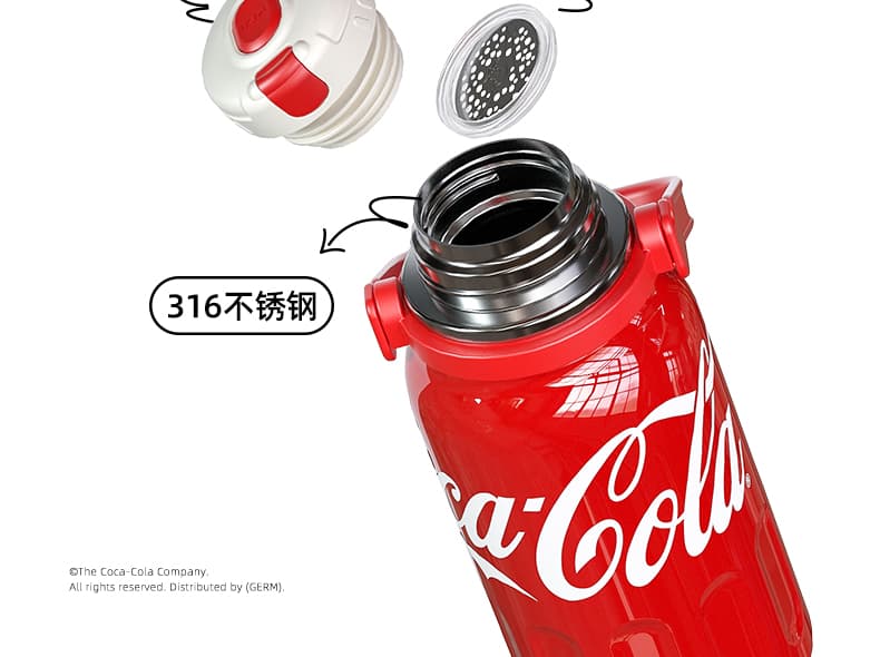GERM 可口可乐 2025 新款律动保温杯,白红撞色复刻经典 IP 元素。