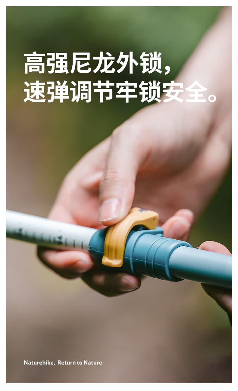 速弹安全外锁,单手一掰一拉,调节快速又稳固。