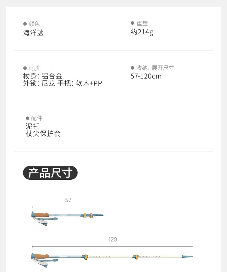 挪客女款登山杖 CNK2550DS013,海蓝配色清新亮眼超吸睛。