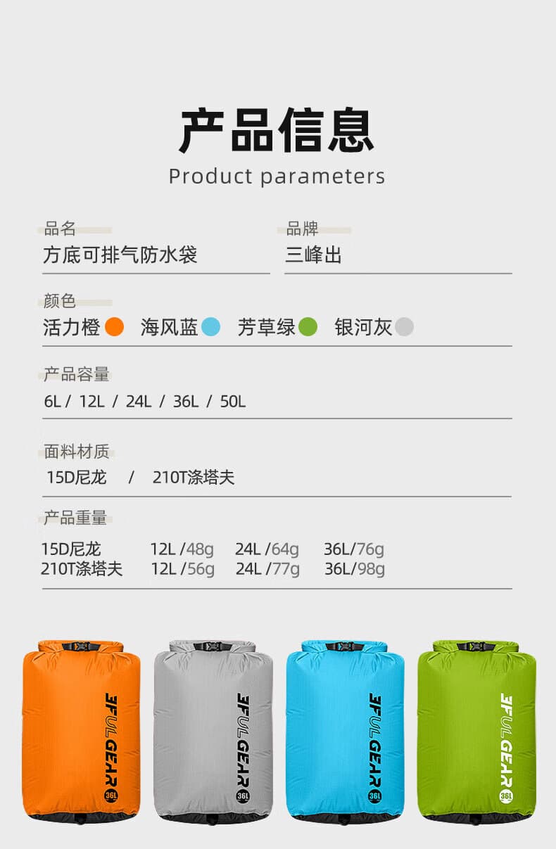 三峰可排气防水袋,36L 银河灰高级耐看不挑场景。