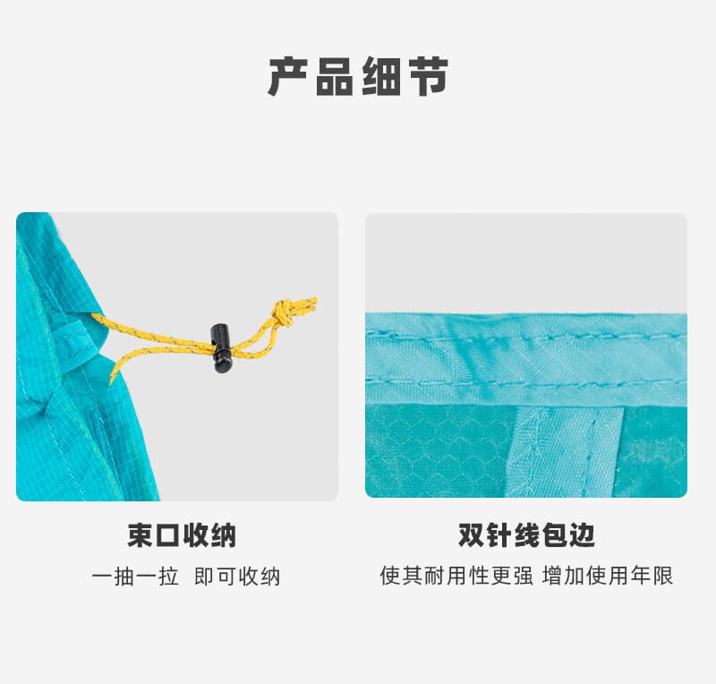 抽绳束口设计,收紧快速,防掉防漏不松散。