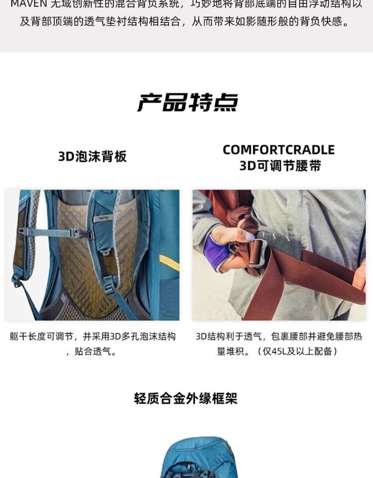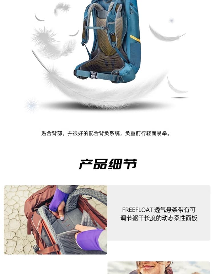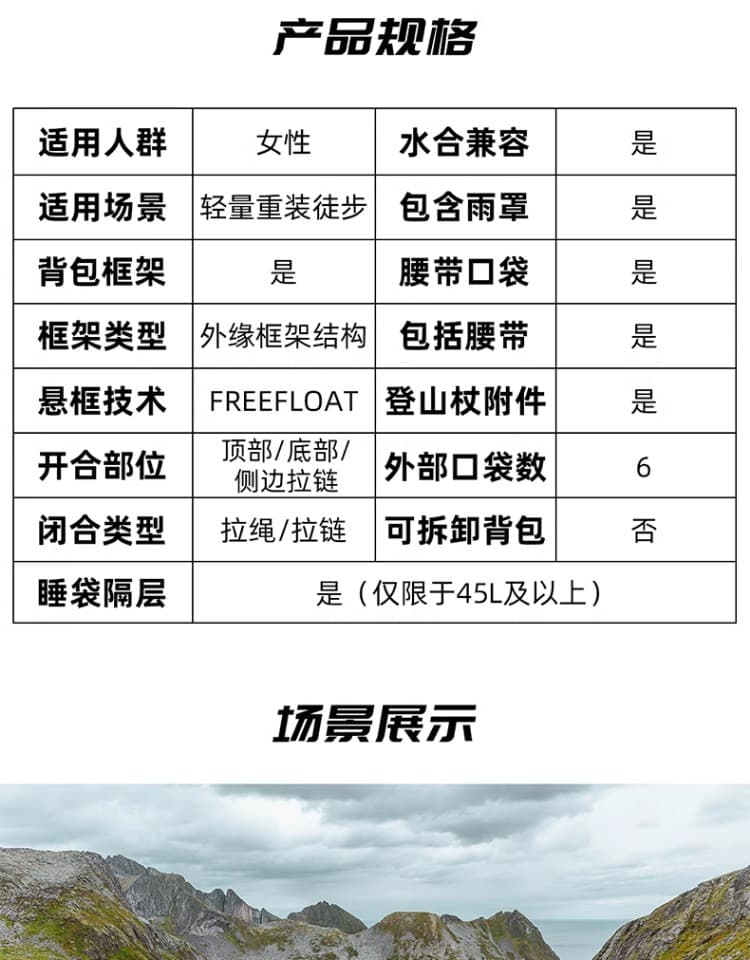 以“45L大容量+女款专属背负+轻量强支撑”为核心