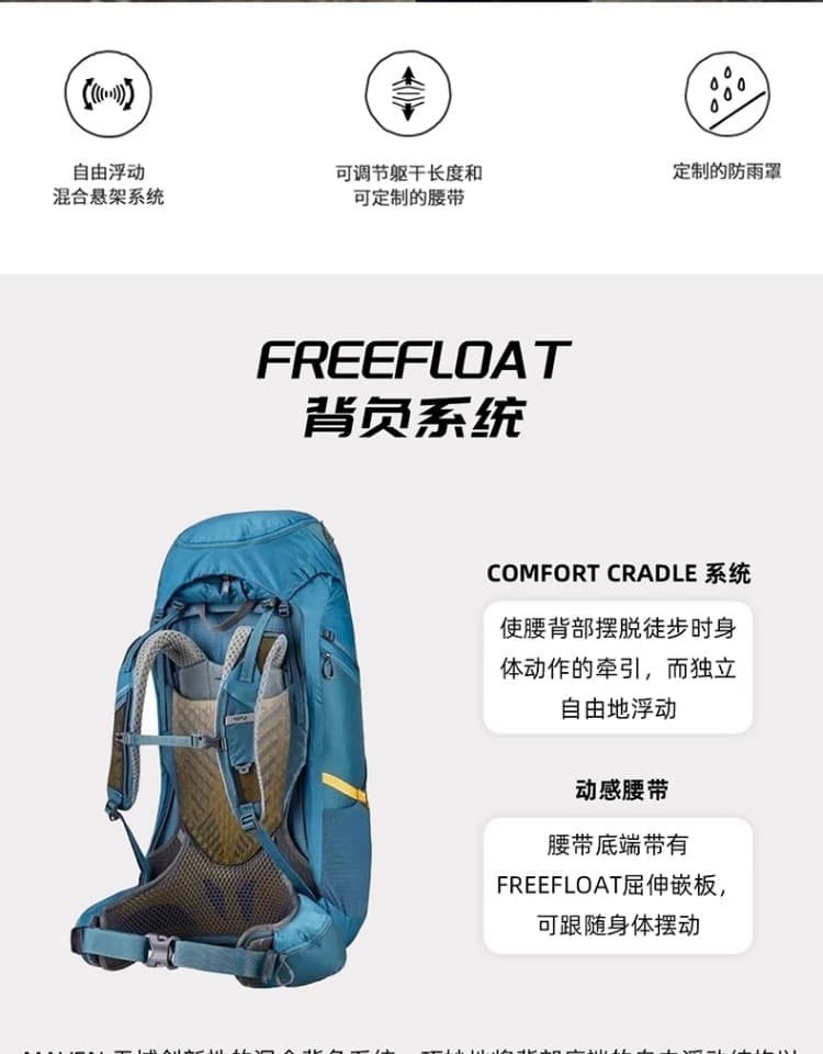 女性高海拔长线党实测,连续5天重装20kg走垭口,FreeFloat Hybrid背负透气性绝了,高海拔暴晒天背部也不闷汗,女款专属腰带太贴合胯部,不卡腰不勒肉,重量全卸到髋部,肩膀一点不酸,侧面直开拉链取冲锋衣不用卸包,隐藏式防雨罩挡住山顶阵雨,1.8kg自重比同容量其他背包轻太多,女性重装再也不用硬扛——绾绾