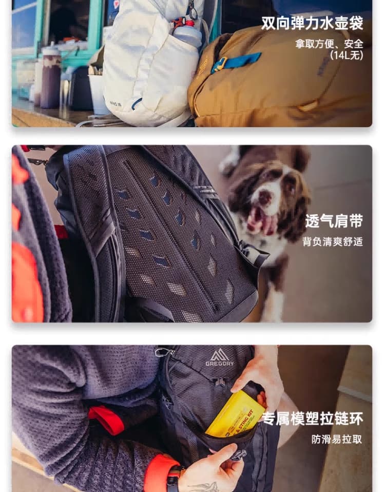 第二次买格里高利的背包了,之前参加重装徒步,买了他们家的包。当时就很喜欢,储物空间很大,设计也很合理,这次又入手了这款单日徒步包,背负感很好,不压肩膀