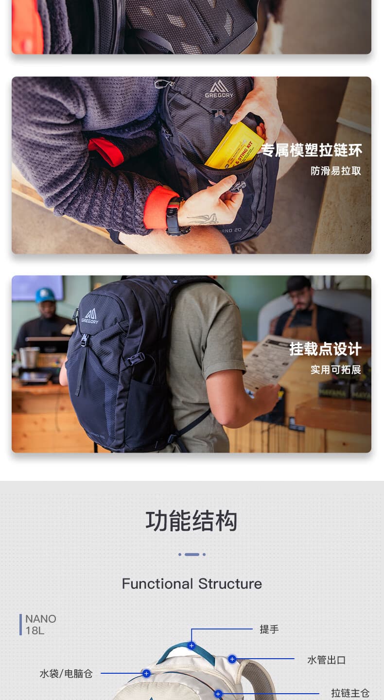 GREGORY格里高利 蜂鸟 NANO 运动旅行户外背包通勤双肩背包冲顶包 16L 背包 ALL 耐磨/背负/电脑仓/通勤/旅行/徒步登山