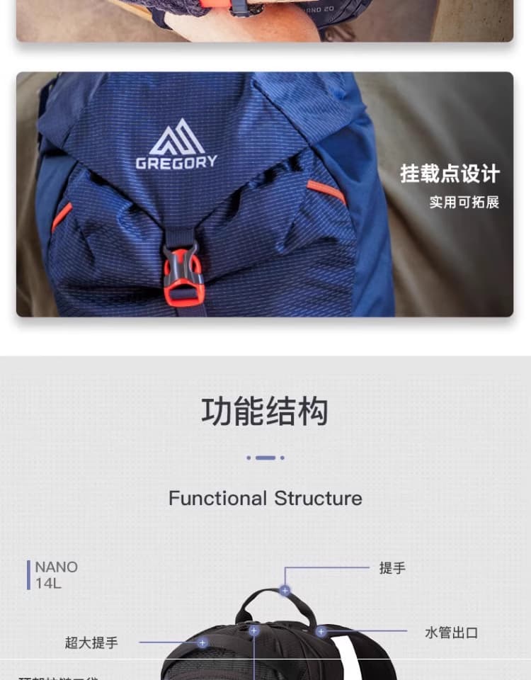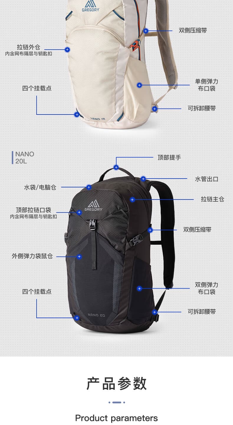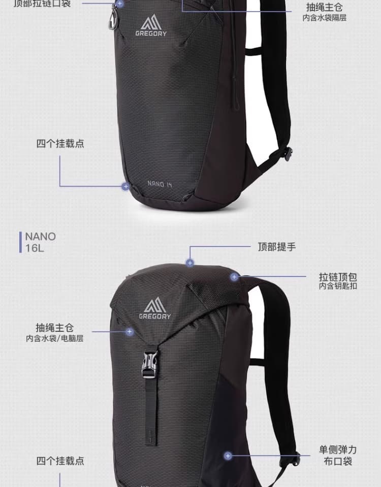 GREGORY格里高利 蜂鸟 NANO 运动旅行户外背包通勤双肩背包冲顶包 20L 背包 ALL 户外季 享好礼-满99减9-满299减30-满499减60-满999减140