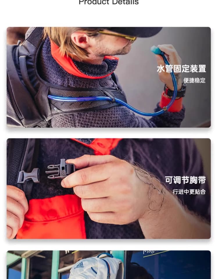 背在身上几乎没感觉,冲顶时完全不束缚动作,独立水袋仓补水方便,登顶后折叠塞进主包,不占地方,耐磨面料蹭过岩石也没划痕,冲顶专用包首选——厚恩共轭