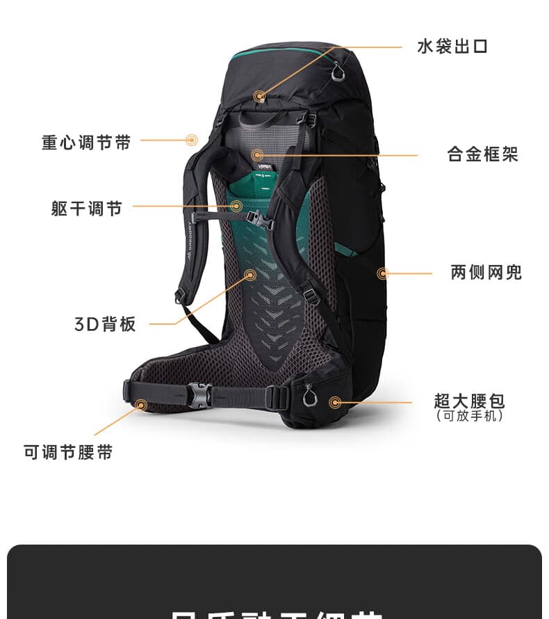 作为户外博主,每周都带队徒步,这款35L容量刚好,单日重装14kg走8小时,VersaFit背负调一次就适配我的背长,3D背板完全不闷汗,腰带把重量卸到髋部,肩膀一点不酸,双层底部磨过碎石路也没划痕——择日再战