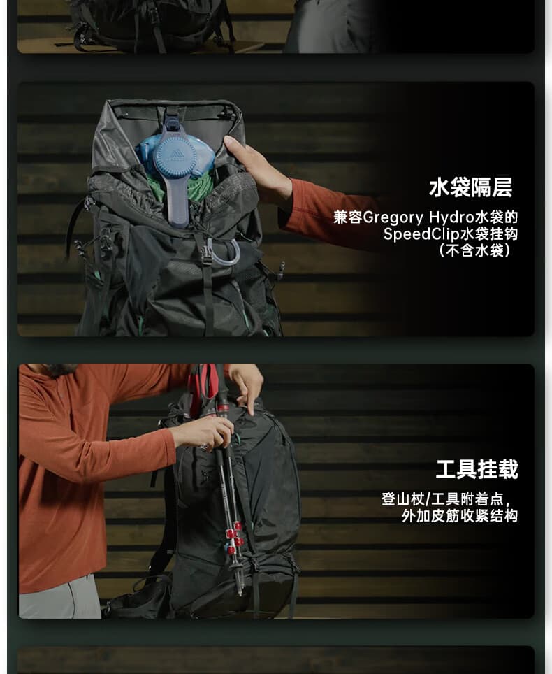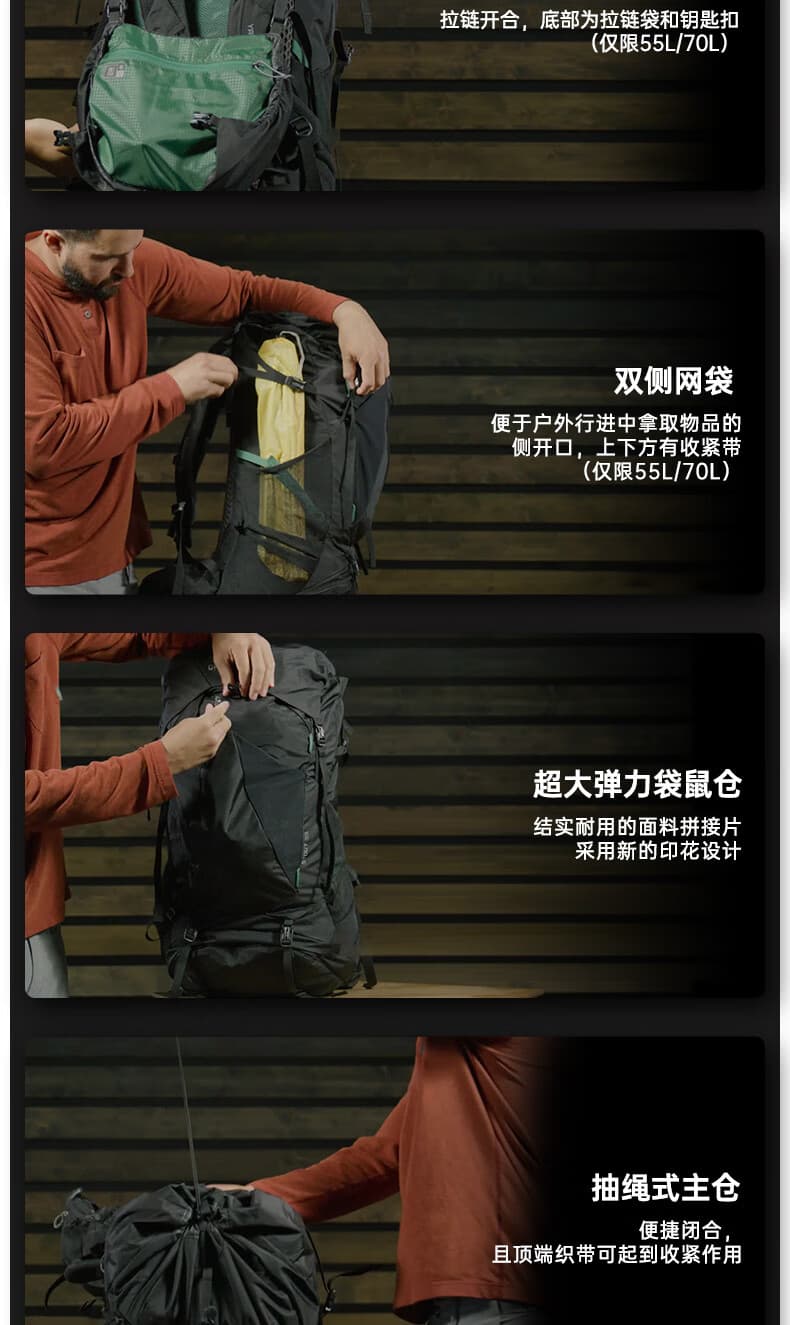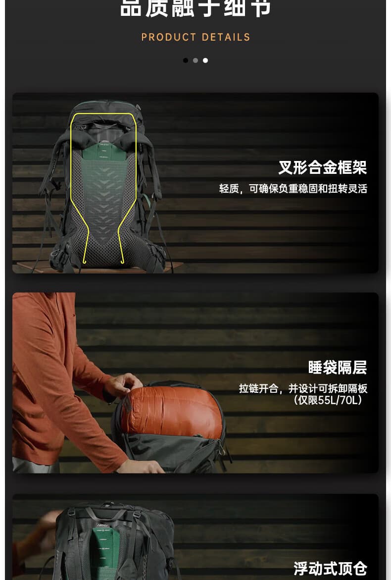 长线徒步老炮实测,Wishbone合金框架支撑太顶了,下坡急冲背包也不晃,主仓双开取睡袋超方便,不用翻乱所有装备,隐藏式防雨罩偶遇阵雨救大命,打包后塞登山包侧袋也不占地,轻量又?乖臁炊?/span>