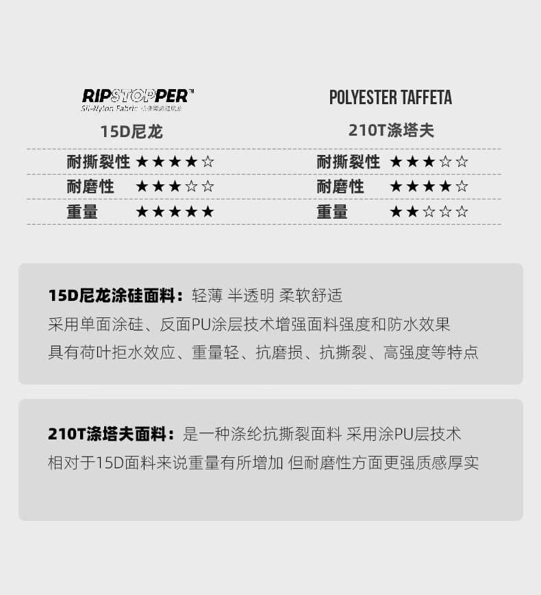 210T 高密度面料,耐磨抗撕裂性能出众。