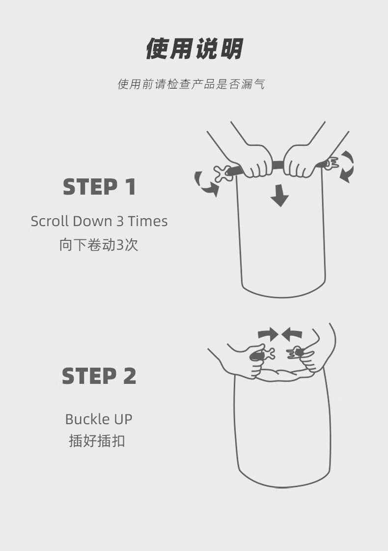 卷口密封设计,折叠 3-4 次扣合,密封性更可靠。