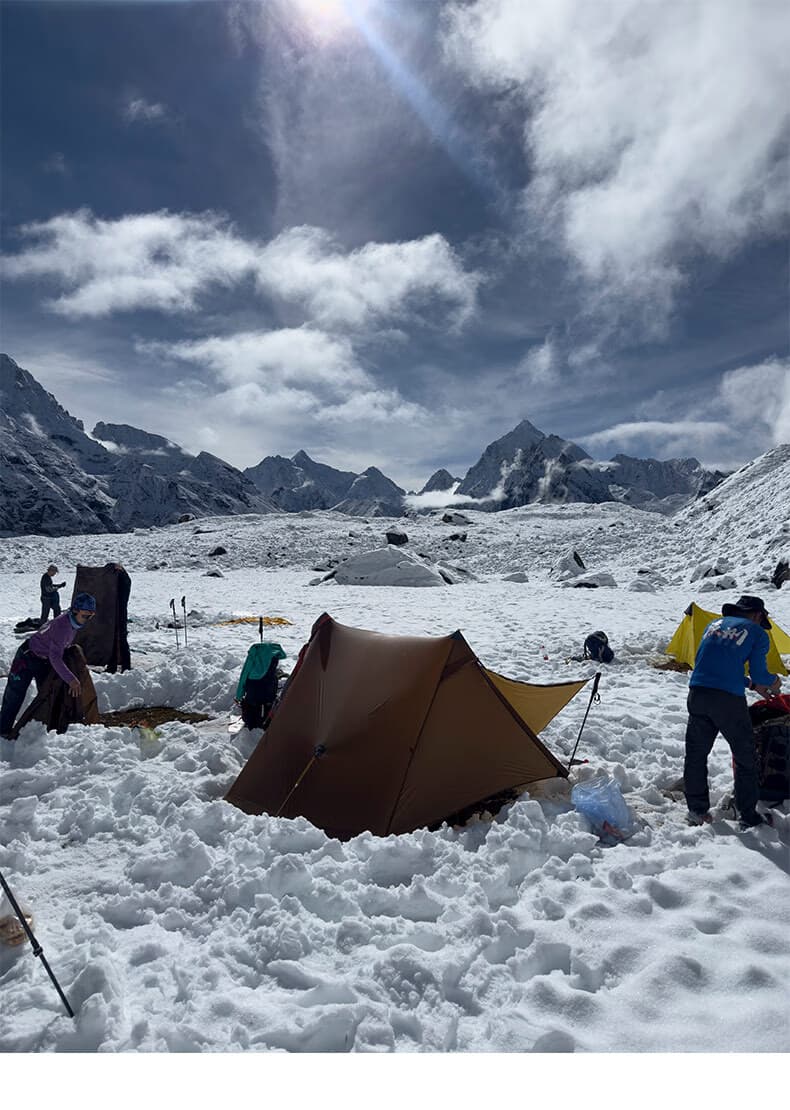 无杆金字塔结构,靠登山杖即可快速搭建,搭配地钉风绳,抗风性拉满。