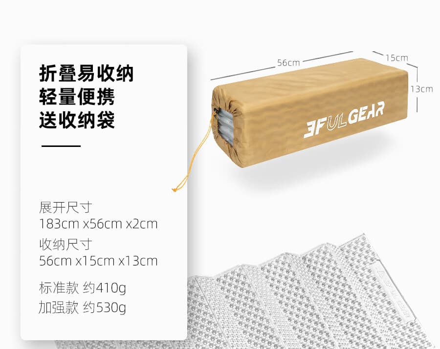 三峰加强款银色防潮垫,以专业户外标准打造多重核心功能,全面满足户外使用需求。