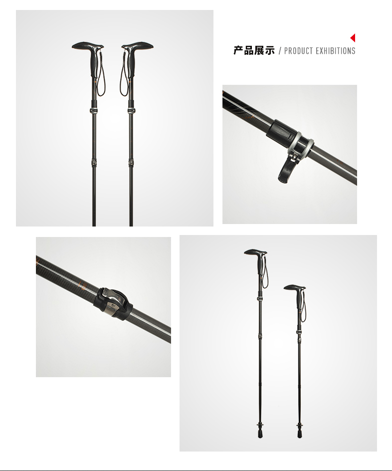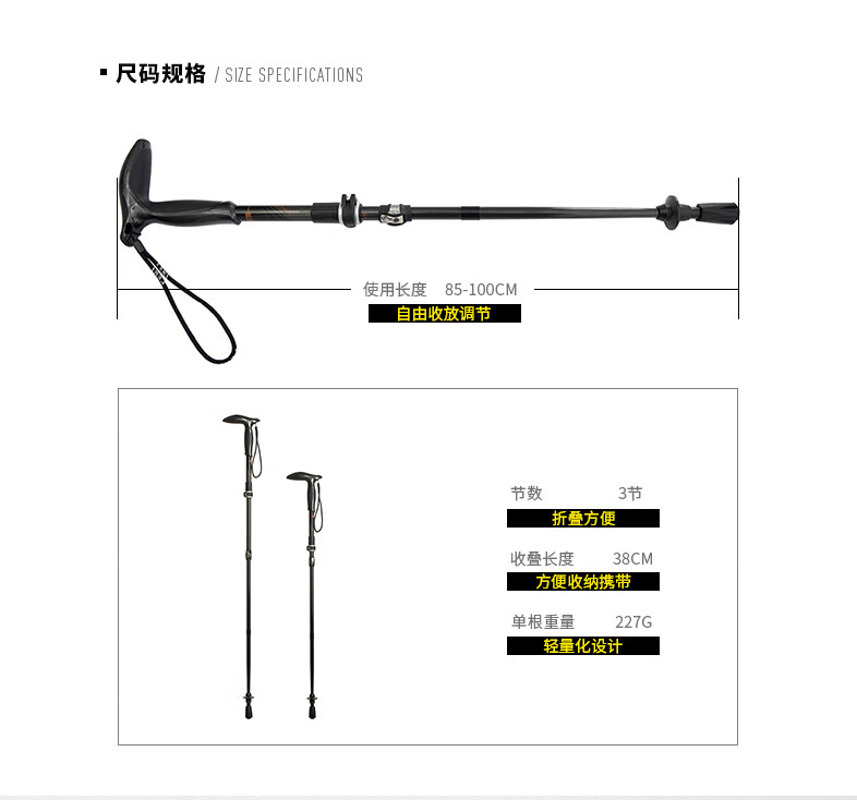 碳纤维杖身 单根重量仅227g,轻质牢固,高强度防断裂