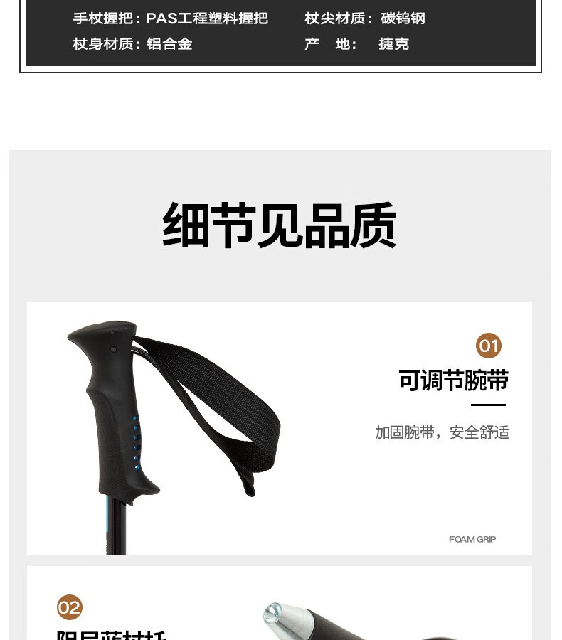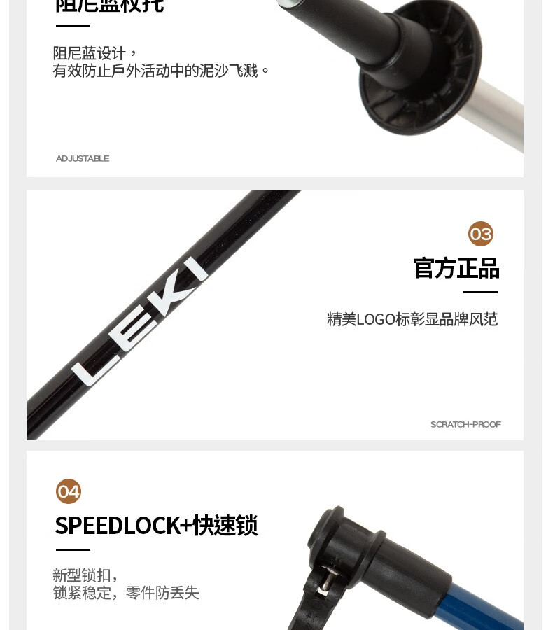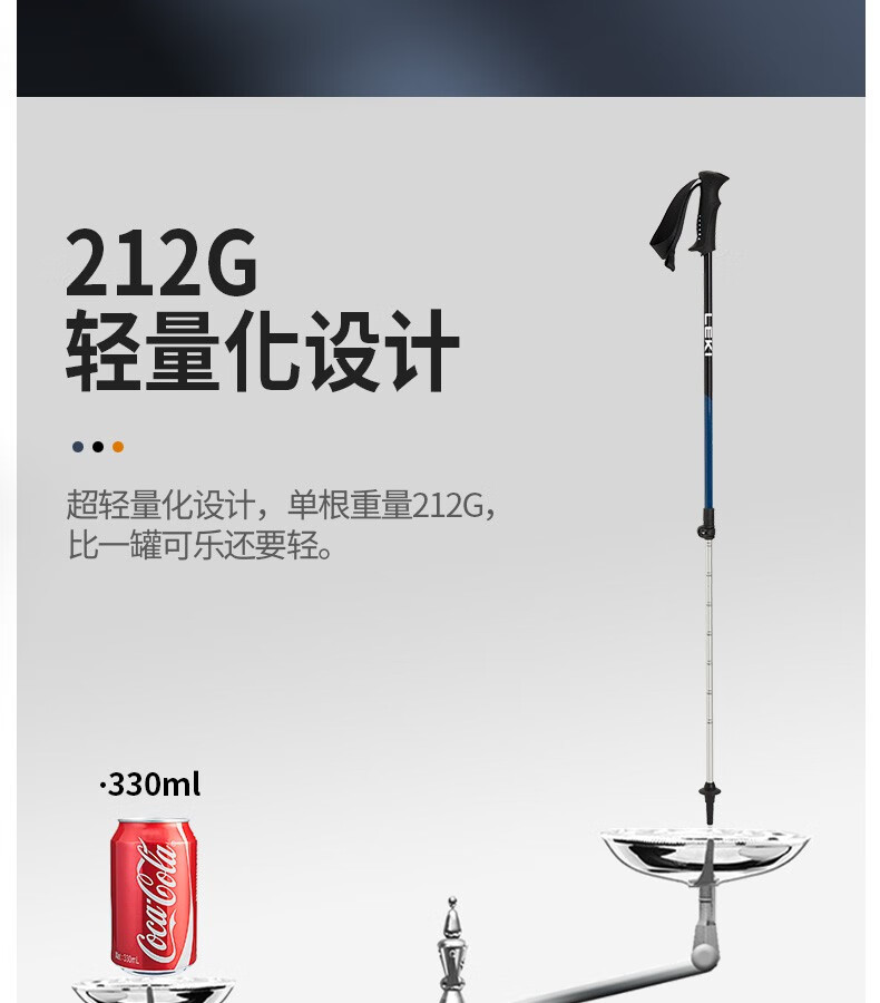 高强度铝合金杖身,兼顾安全强度与便携性,单根重量仅212g,轻盈不压肩,抗弯折性能优异,适配儿童户外使用需求