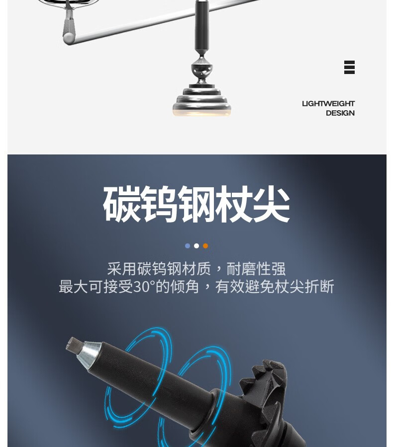 高强度铝合金杖身,用料扎实,兼顾稳固性与耐用性,抗弯折耐冲击性能优异;