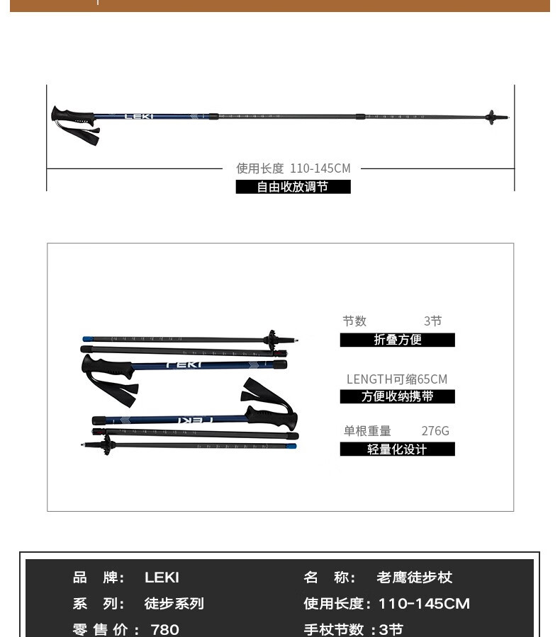 来自德国品牌LEKI的老鹰系列徒步杖,以结实耐用为核心优势,是户外徒步爱好者的信赖之选