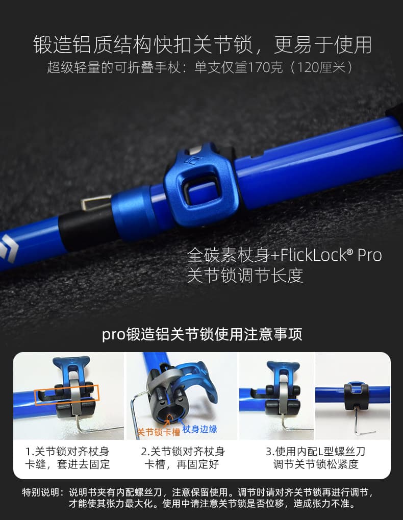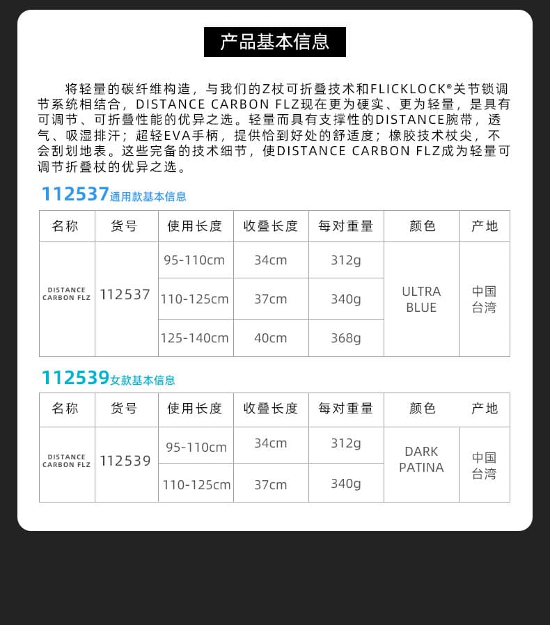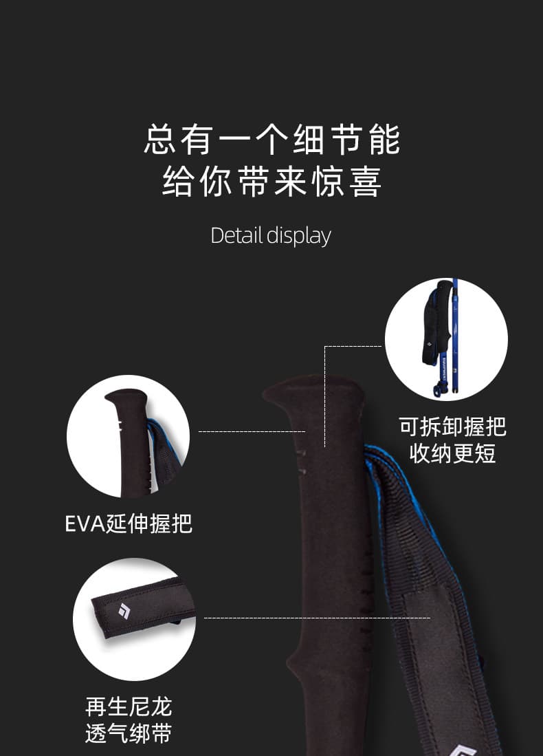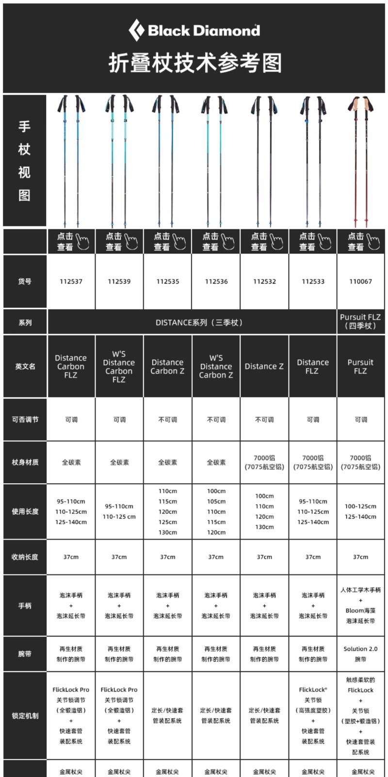 FLZ是Black Diamond的技术缩写,F=FlickLock(快速锁定系统),L = 可调节长度,Z=Z-Pole 折叠技术
