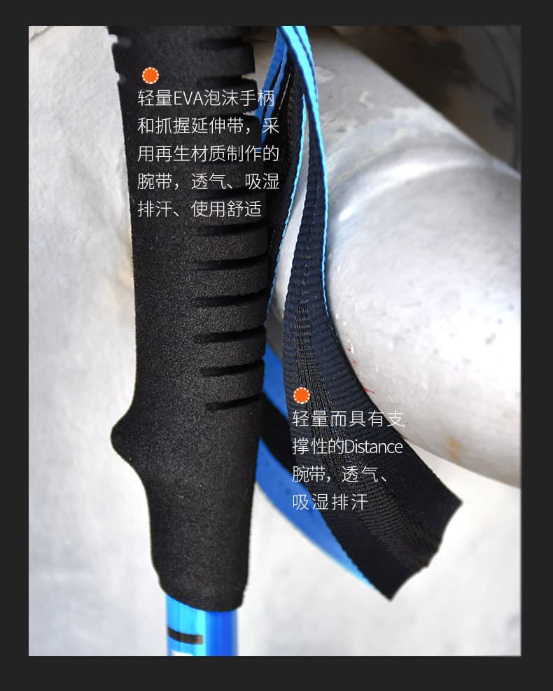 DISTANCE意为远程 / 长距离,表明专为长距离徒步、越野跑等设计的登山杖。