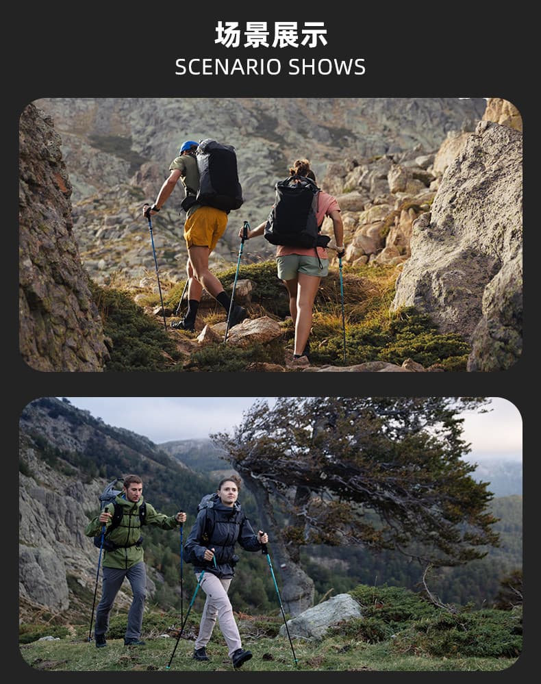 它专为长距离户外活动设计,采用碳纤维材质保证轻量化与强度,这款登山杖兼具可快速调节长度和可折叠收纳的双重优势,便携性极强。