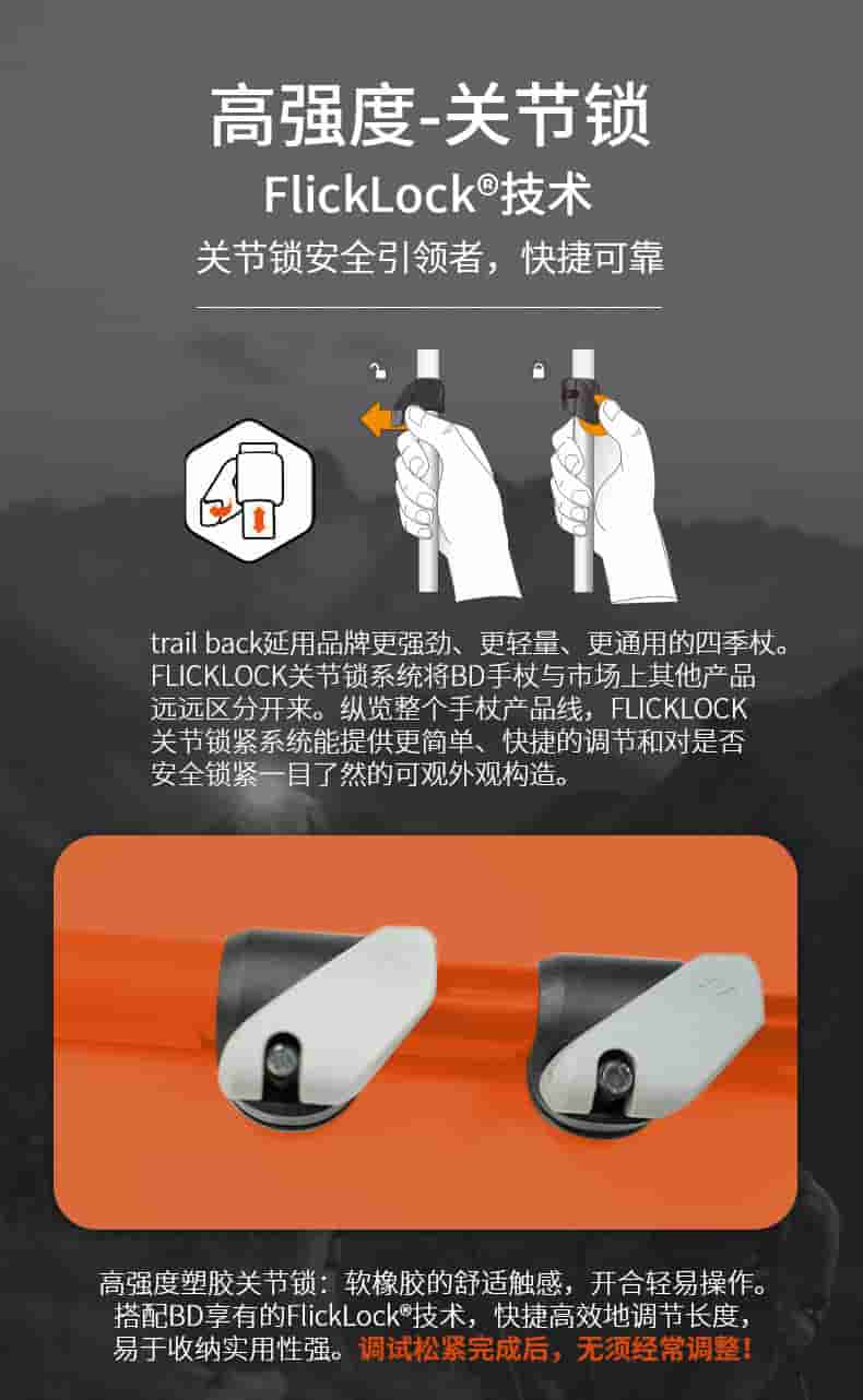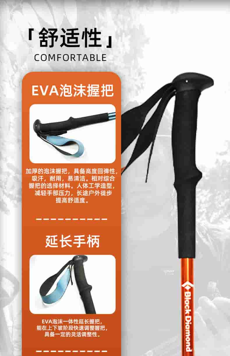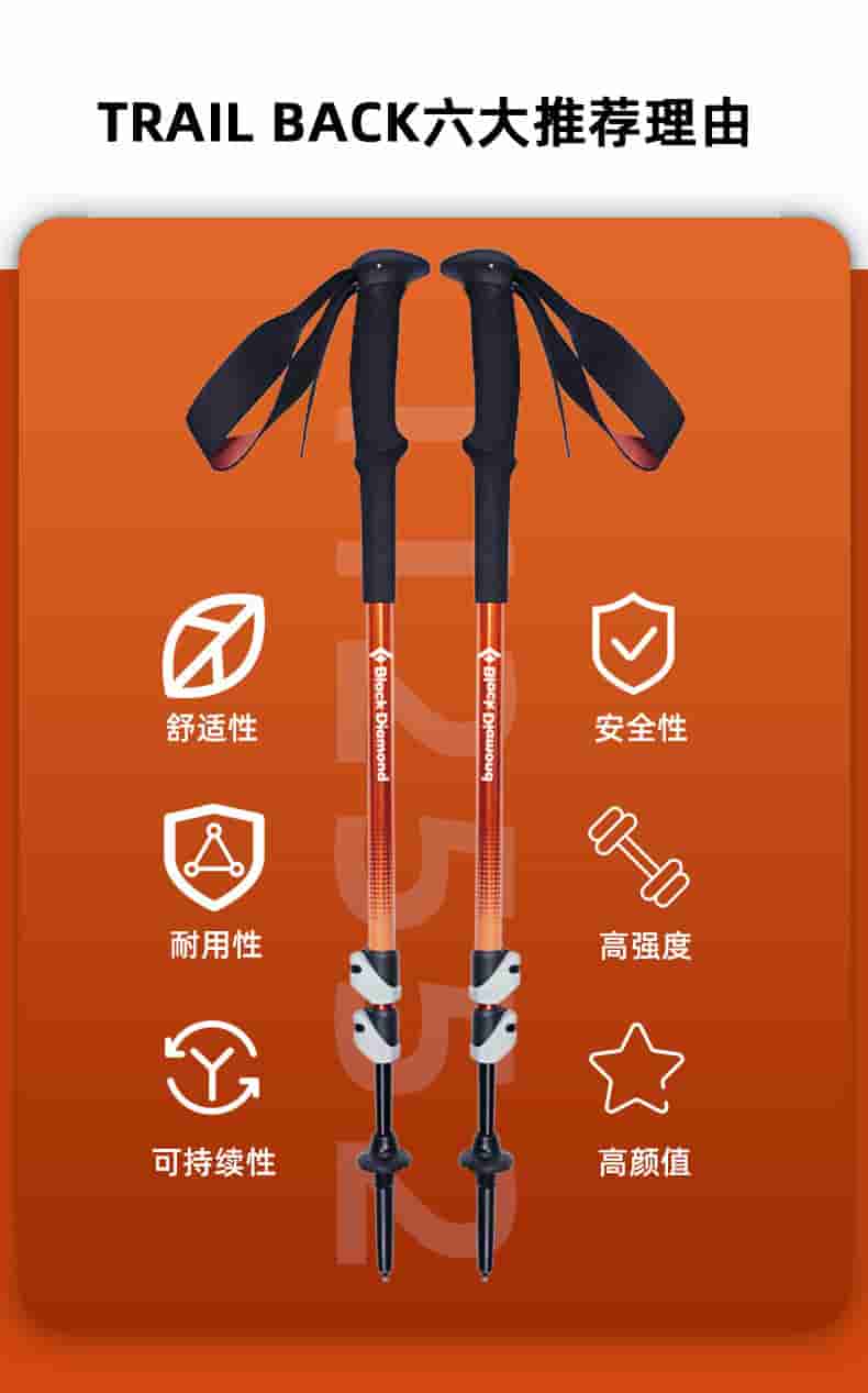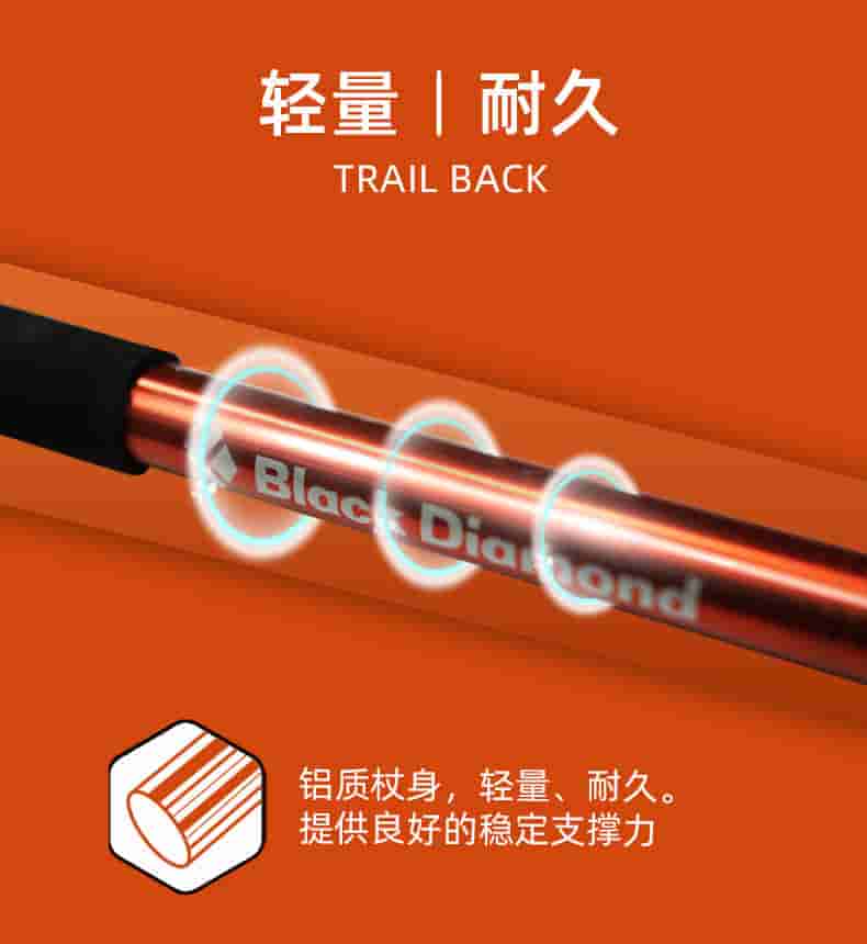 Trail Back 是黑钻的入门级徒步登山杖,中文常称小径往返登山杖。它采用铝合金材质,三段式可折叠,配有快锁调节系统和舒适 EVA 手柄,性价比高,适合日常短途徒步、背包出行。