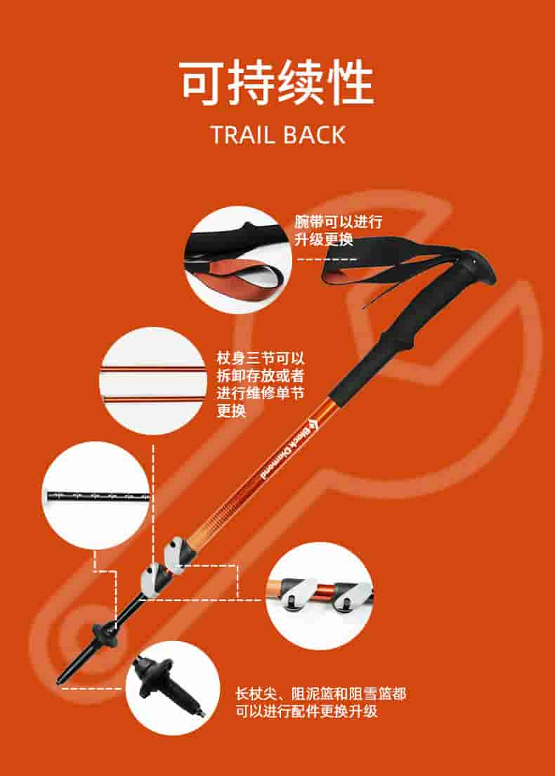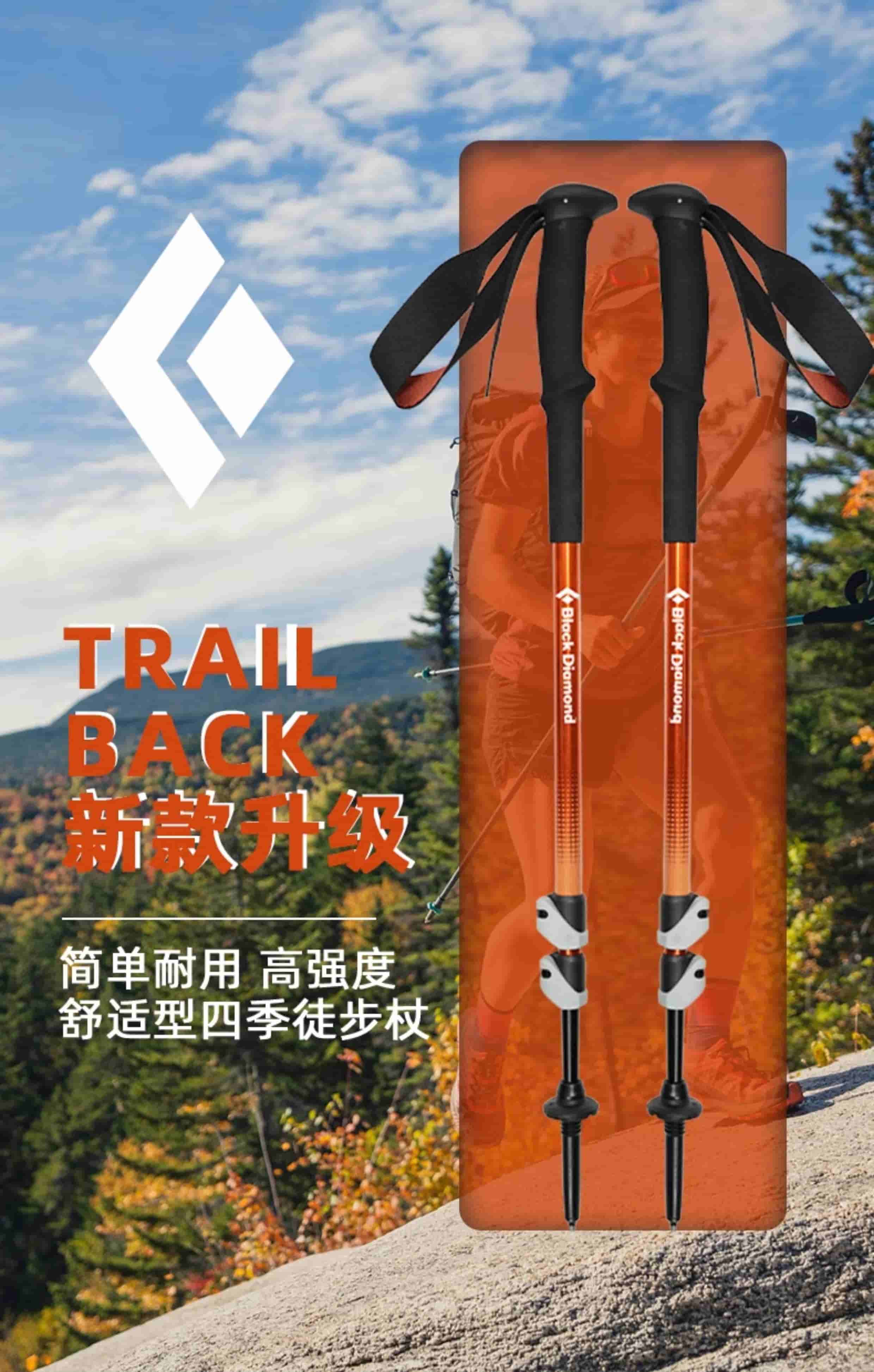 Trail Back 是黑钻的入门级徒步登山杖,中文常称小径往返登山杖。它采用铝合金材质,三段式可折叠,配有快锁调节系统和舒适 EVA 手柄,性价比高,适合日常短途徒步、背包出行。
