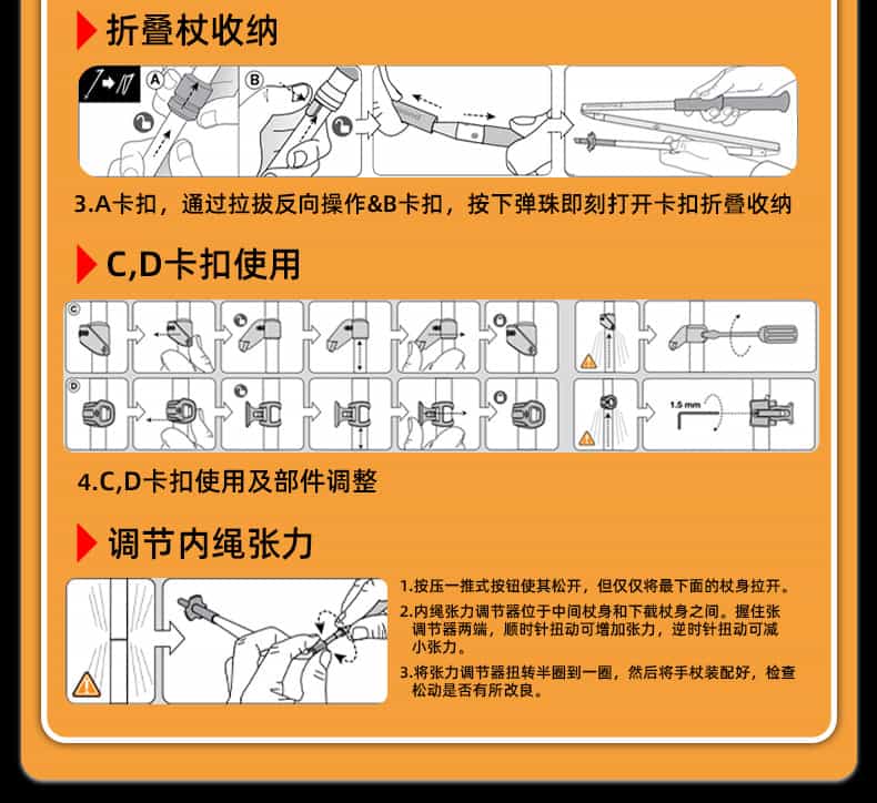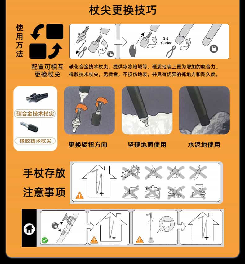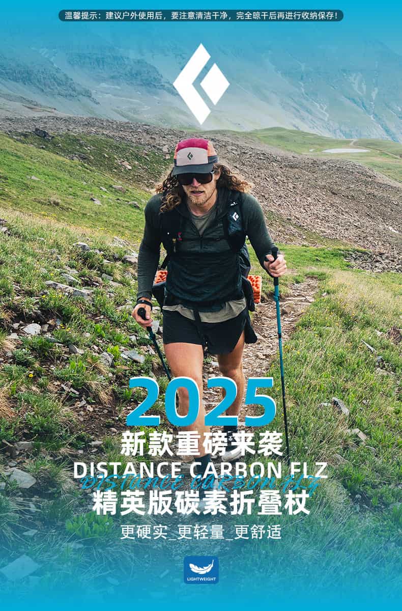 它专为长距离户外活动设计,采用碳纤维材质保证轻量化与强度,这款登山杖兼具可快速调节长度和可折叠收纳的双重优势,便携性极强。