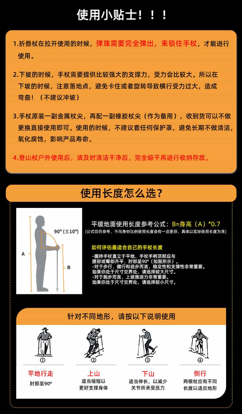 “再~~见”:“收纳才37cm,塞越野包腰包刚好不占地,适配我170cm身高,碳钨杖尖在湿滑碎石上稳得离谱,橡胶杖帽走景区也不吵人。”