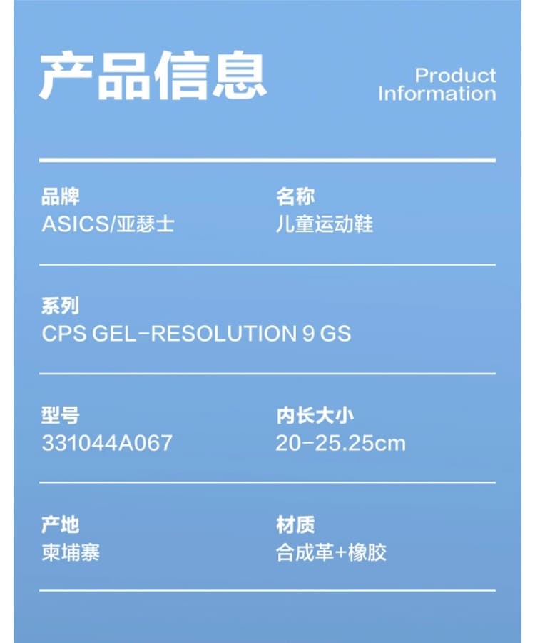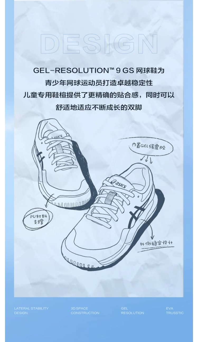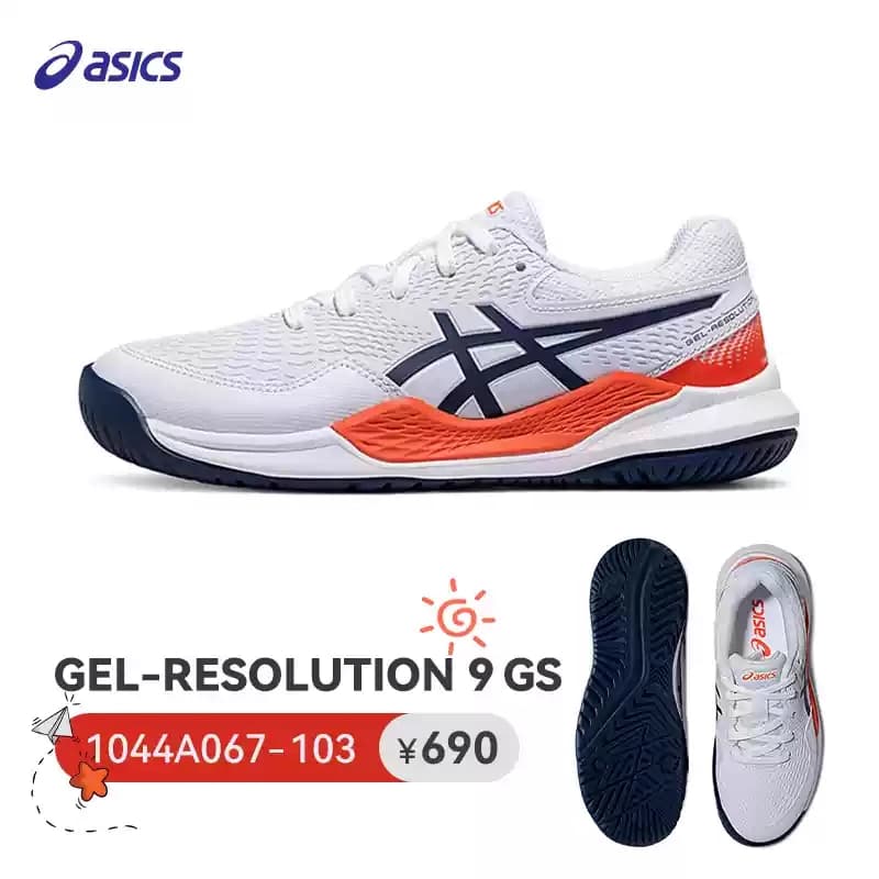 ASICS亚瑟士网球鞋 儿童青少年网球鞋GEL-RESOLUTION 9 GS运动训练网球鞋 1044A067-103 清仓特惠,售完无补!!缓震回弹 防滑耐磨