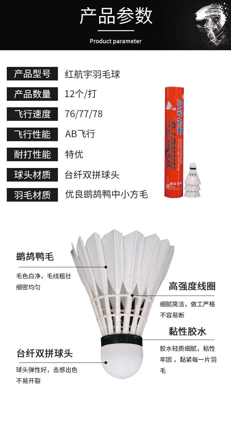 航宇 红航宇 羽毛球 比赛训练球 耐打耐用 鹚鸪鸭中小方毛 12只/筒 飞行平稳 落点稳定 经久耐打