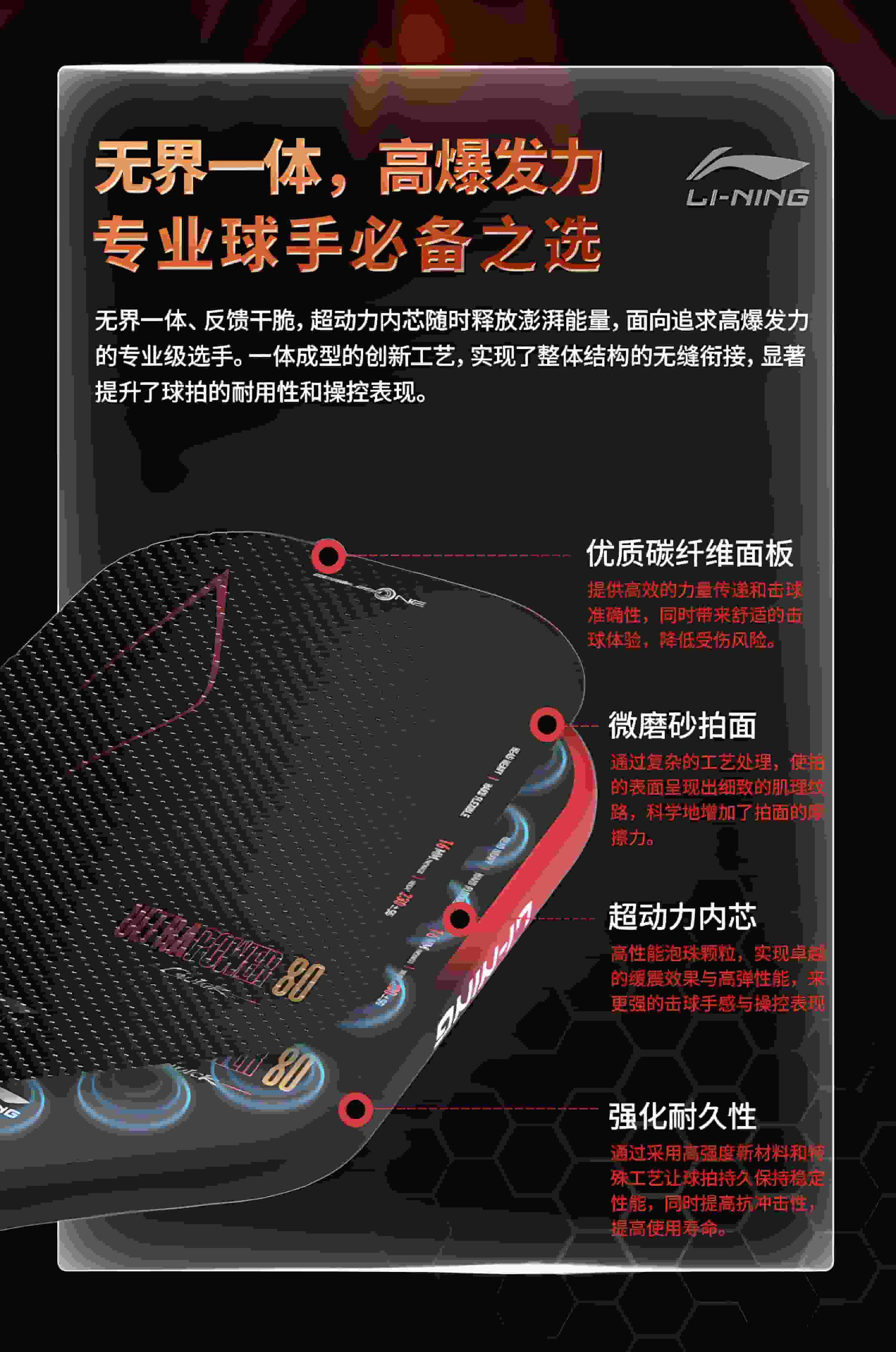 LINING李宁匹克球拍板 四代高端热压一体专业赛事级碳纤维pickleball比赛训练板球拍ACPV085-16暗海军蓝