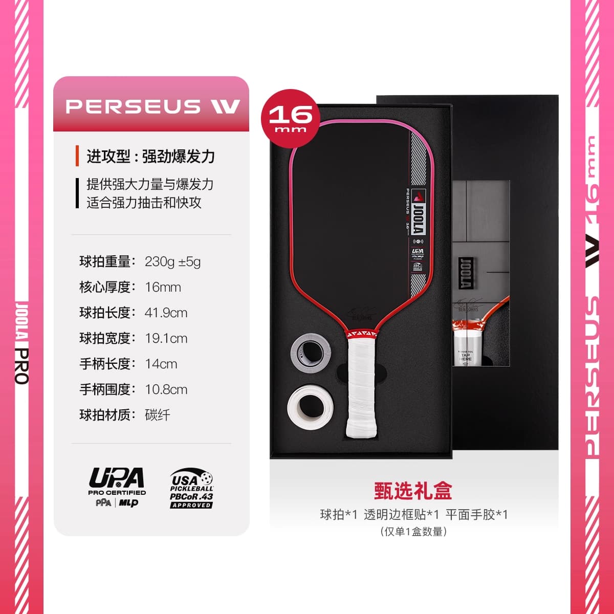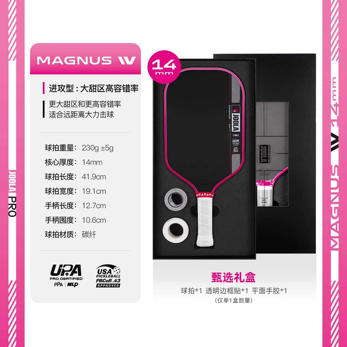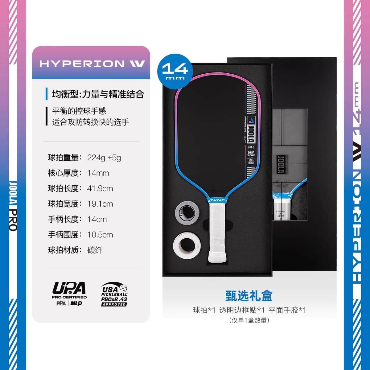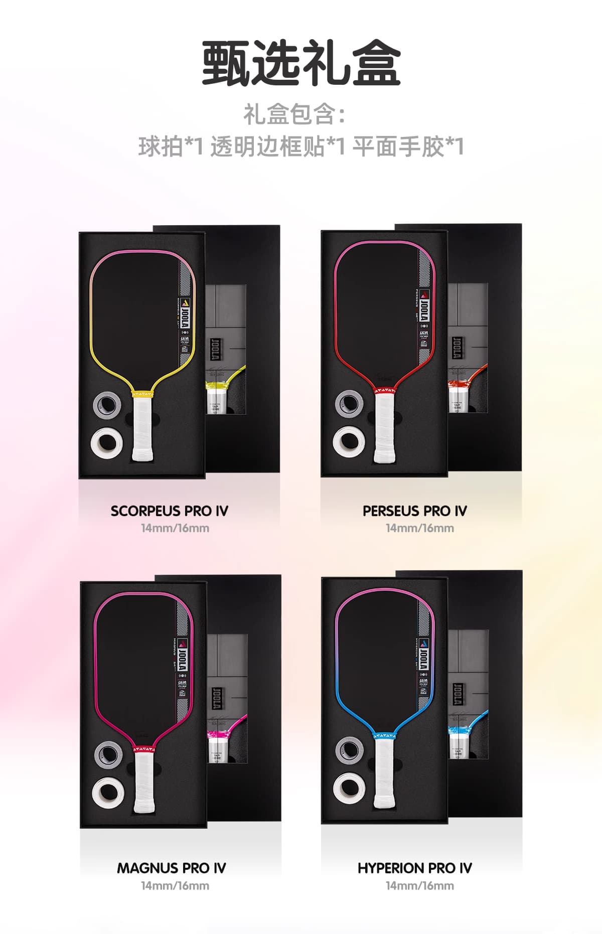 JOOLA优拉 匹克球拍 Scorpeus Pro IV碳纤维USAPA/UPA双认证专业匹克球拍 14mm-渐变黄 600153 【亚洲限定新品礼盒装】 强调精准度与控球能力,适合防守与战术控制