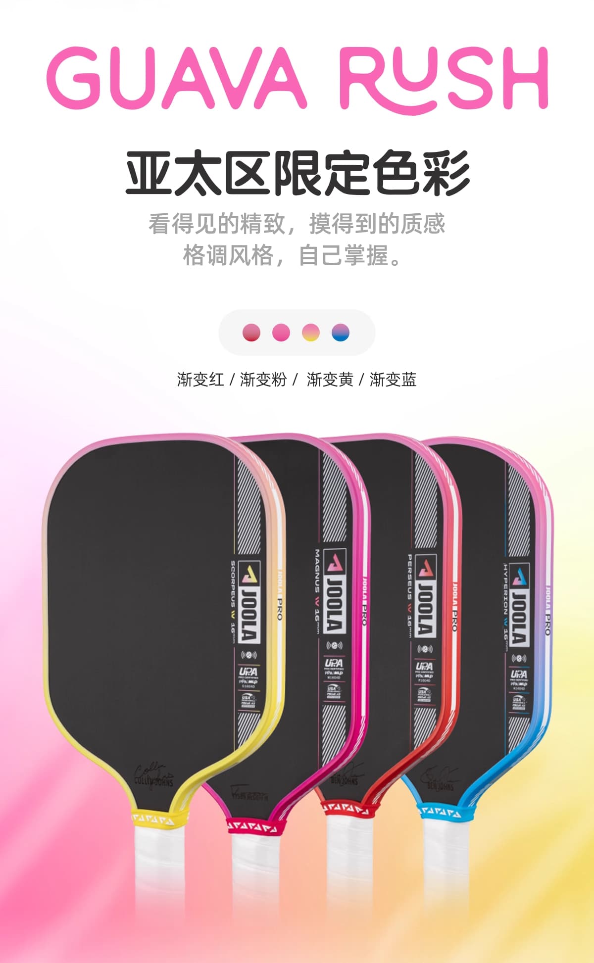 JOOLA优拉 匹克球拍 Hyoerion Pro IV碳纤维USAPA/UPA双认证专业匹克球拍 14mm-渐变蓝 600159 【亚洲限定新品礼盒装】 平衡的控球手感,适合攻防转换快的选手