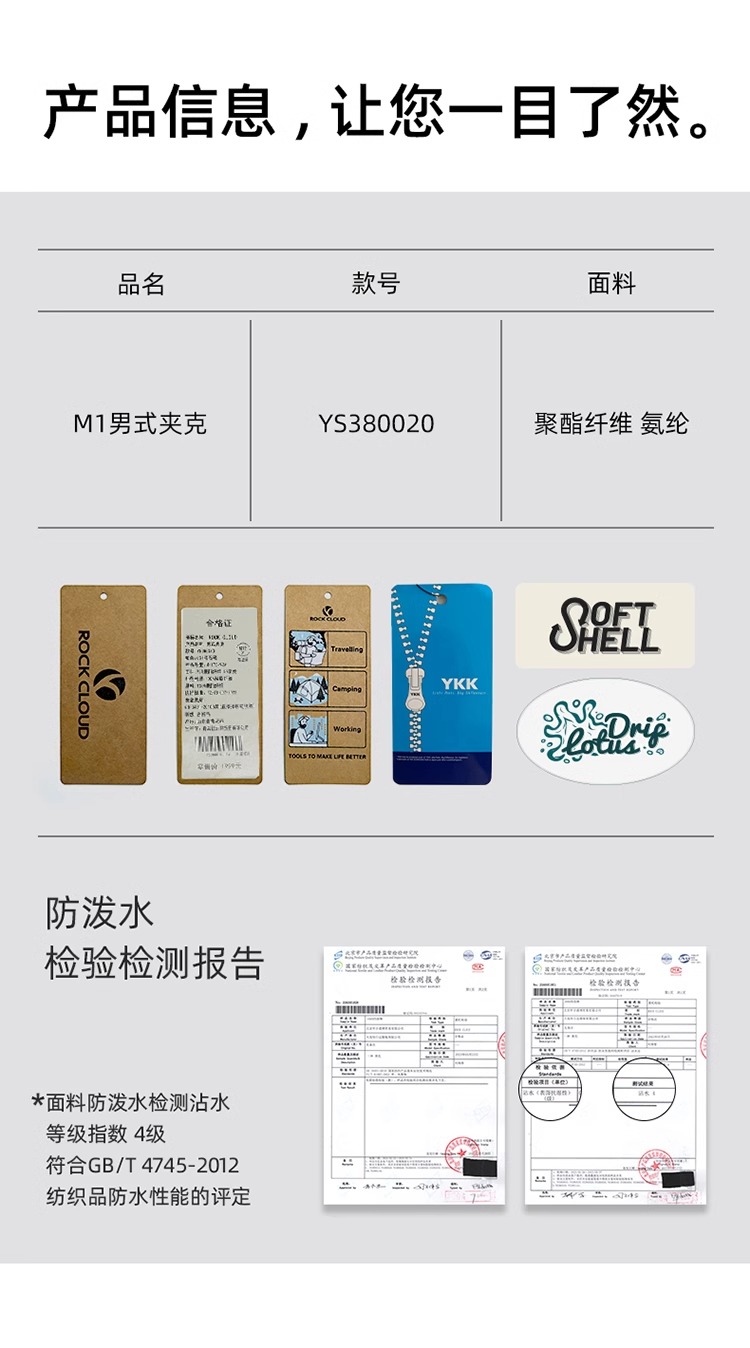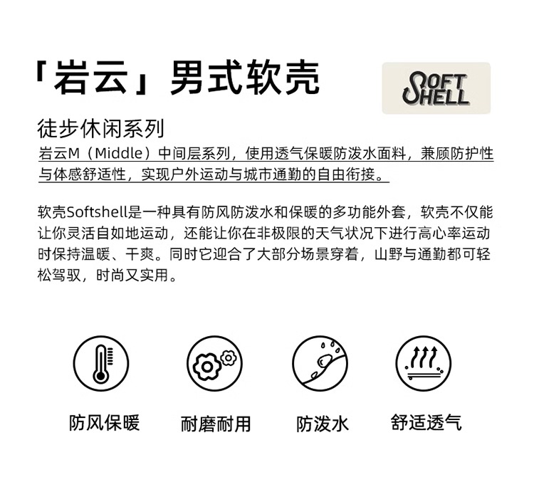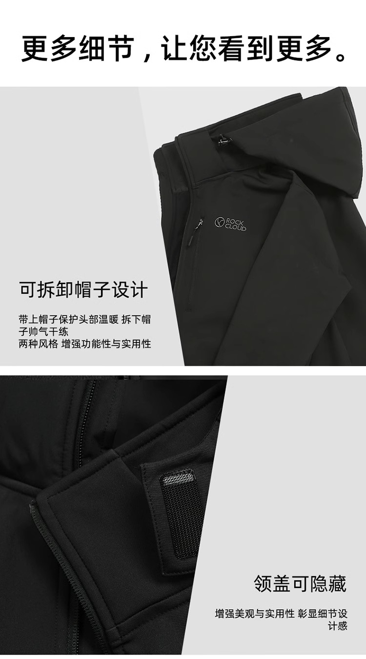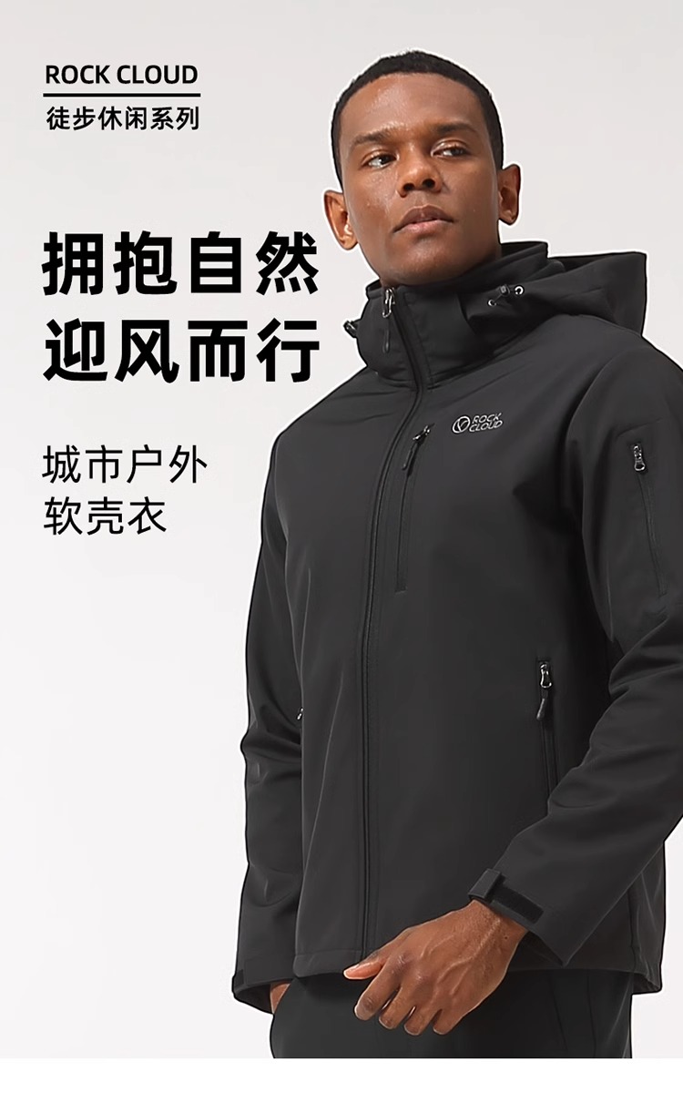 RockCloud 男款防风防泼水保暖连帽软壳上衣 YS380020