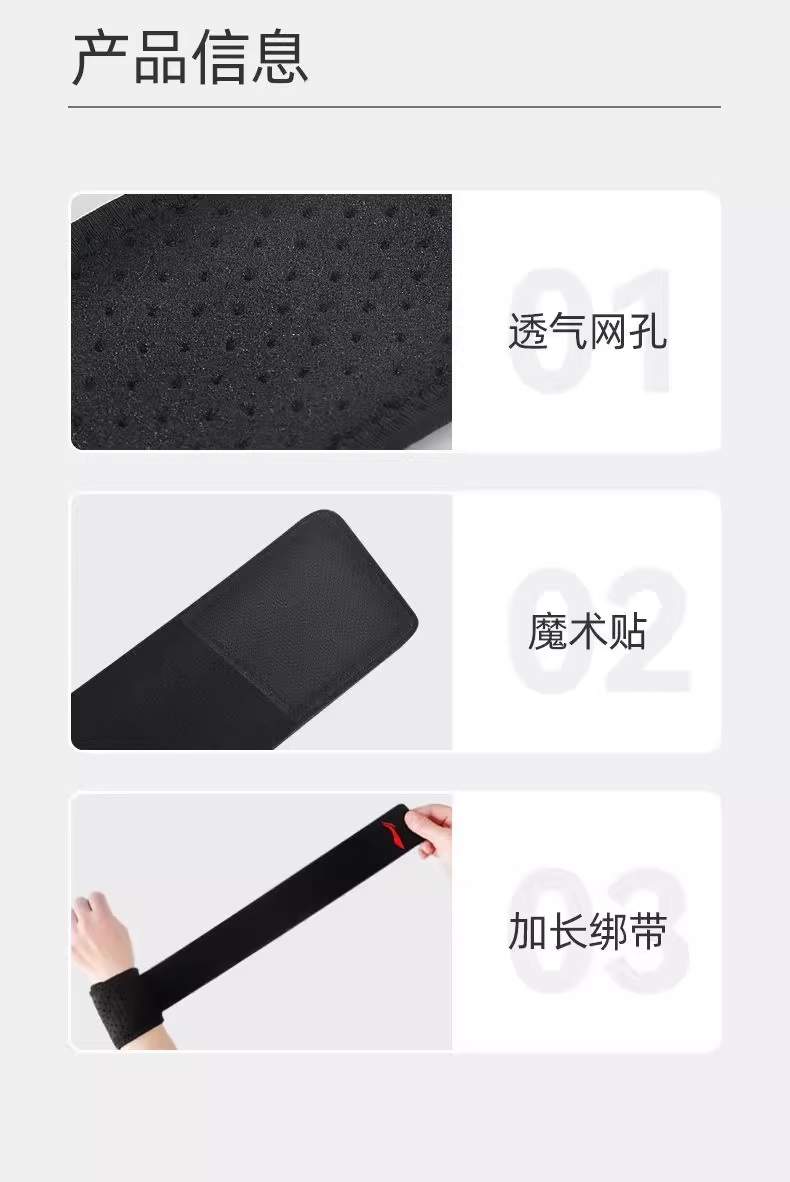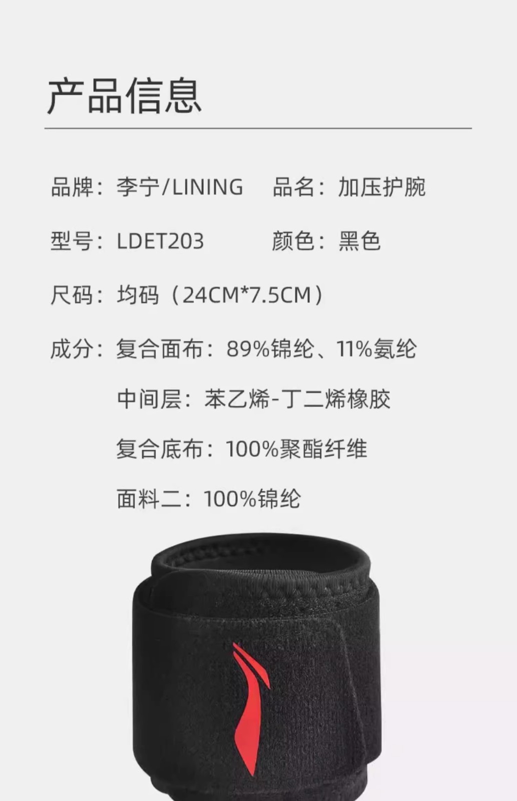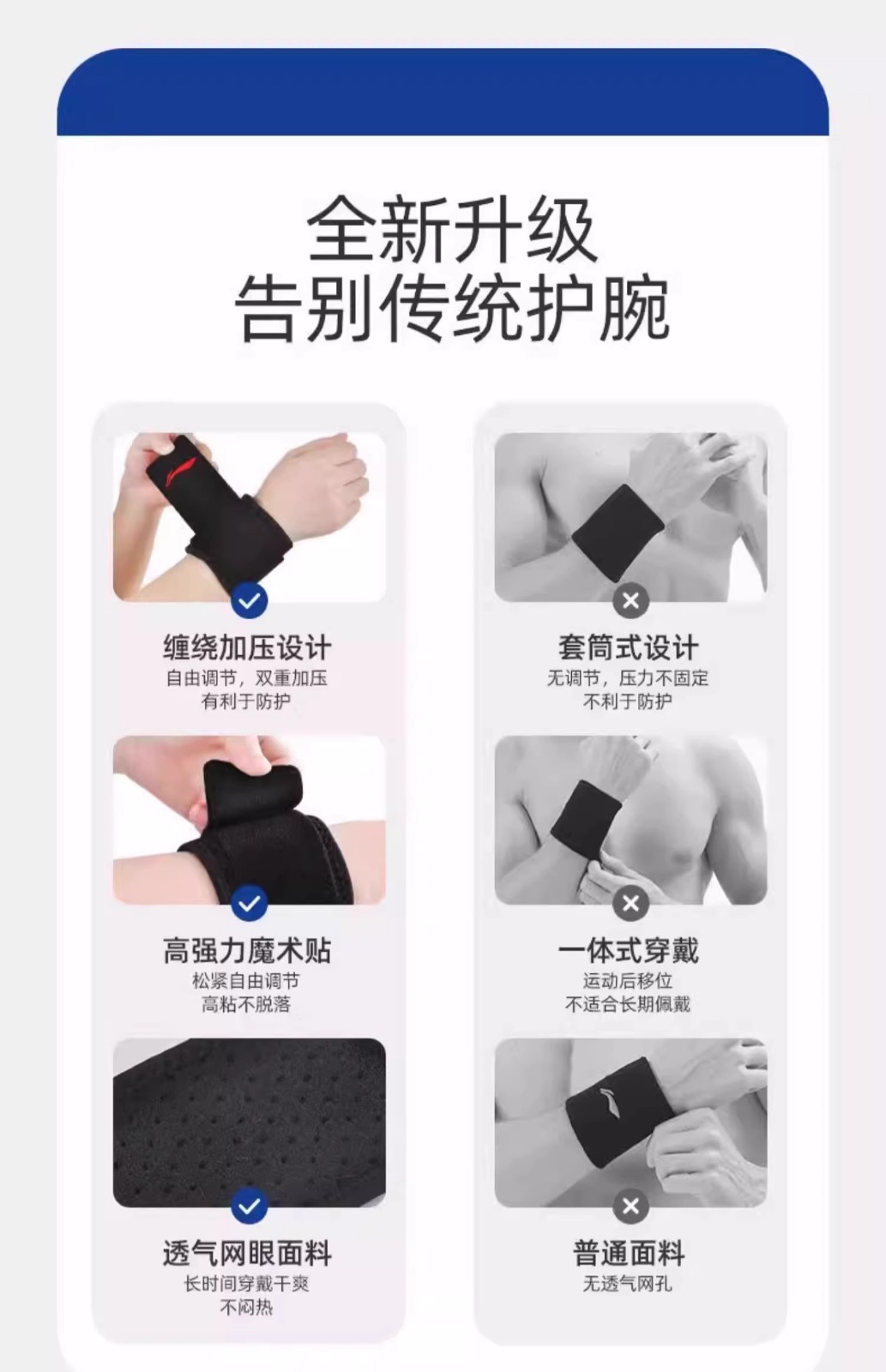李宁护腕 健身运动护具卧推助力护手腕扭伤力量训练专用绷带加压护腕【单只装】 LDET203 开放式缠绕设计,网孔吸汗透气