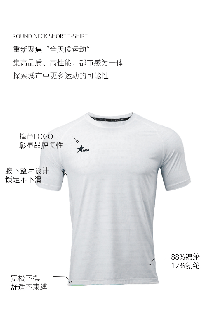 茵浪男款圆领速干冰丝运动T恤